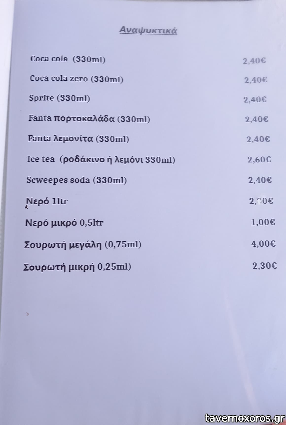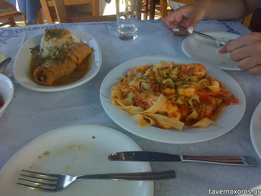 Στα του φαγητού δοκιμάστηκαν ρεβίθια φούρνου, κρεμμυδοτυρόπιτα, σκορδολάζανα και αρνάκι λεμονάτο στο φούρνο με πατάτες και ήταν όλα πολύ νόστιμα με εξαίρεση τα σκορδολάζανα που ήταν αδιάφορα. Χύμα κρασί λευκό καλό.