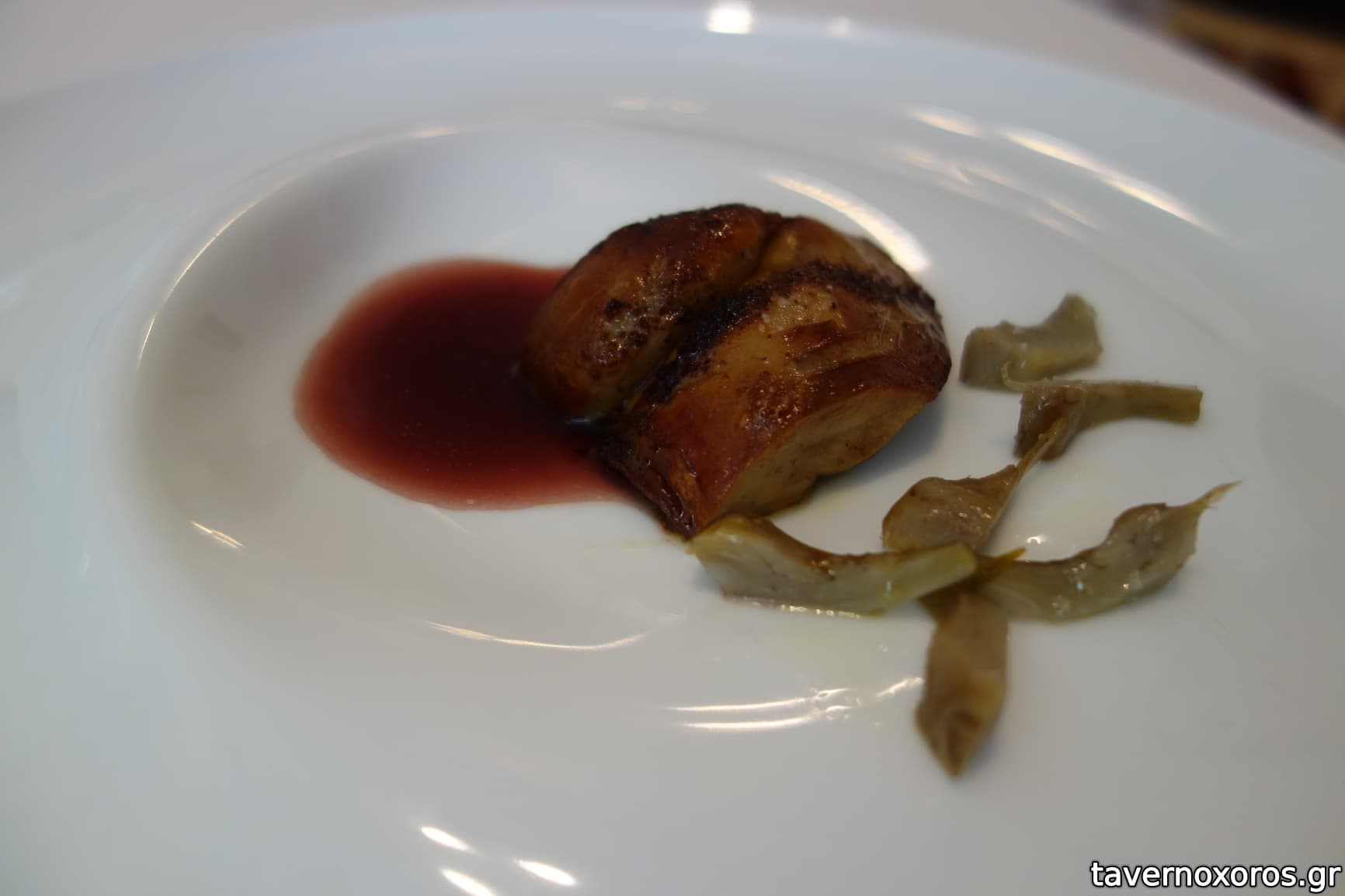 Product 7: "Duck foie gras, artichokes and black olive juice" (παρανοϊκό πιάτο, η σάλτσα απίστευτη, το καλύτερο φουά γκρα έβερ!)