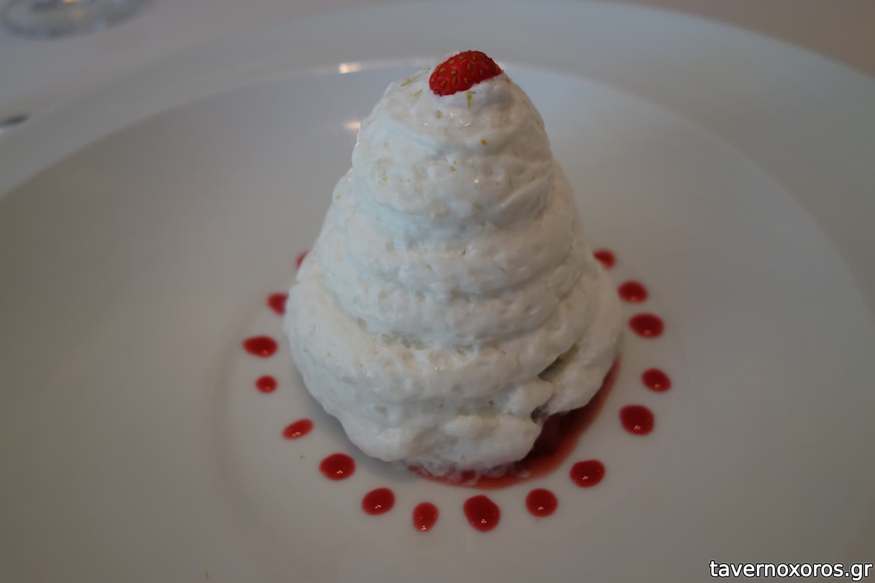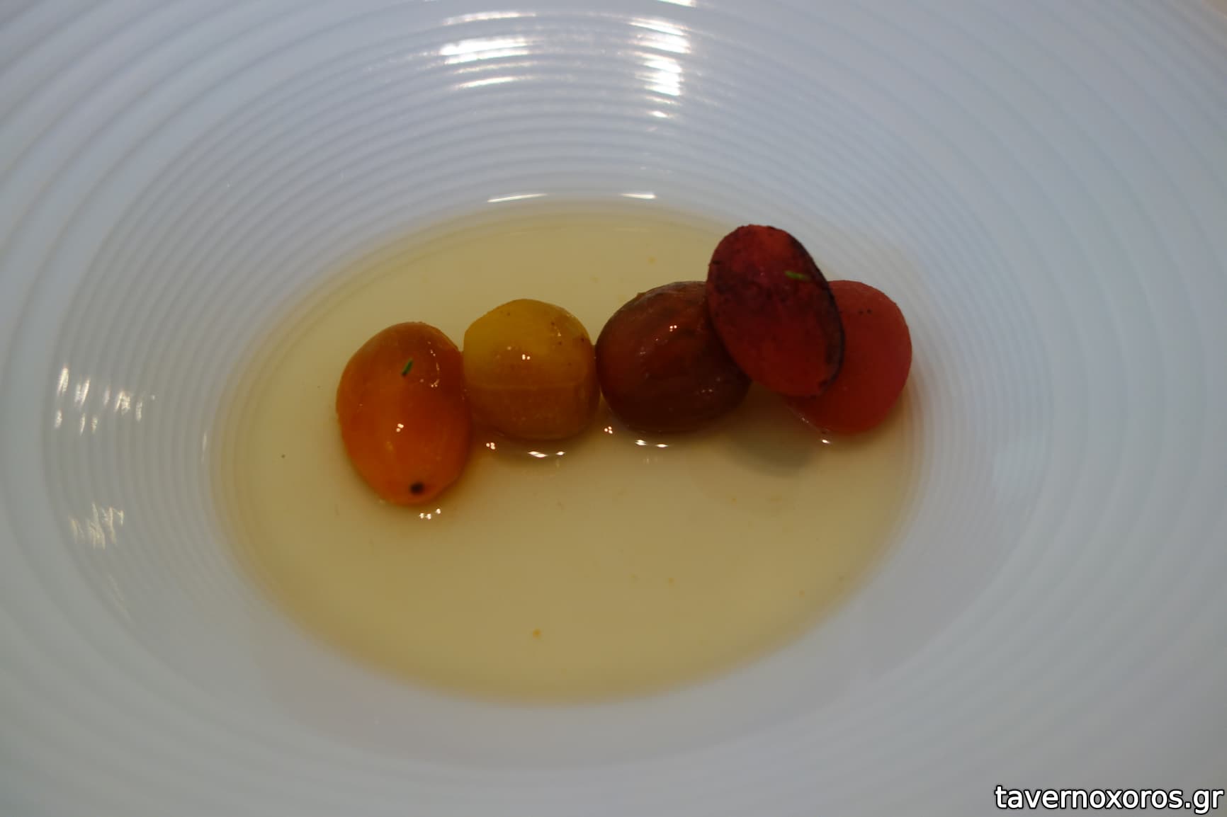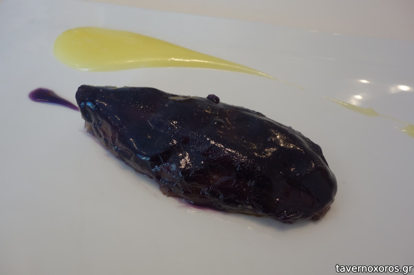 Product 2: "Roasted aubergine with liquorice (makil goxo), yogurt of ancient olive trees oil" (ζόρικη γεύση, εμένα μου φάνηκε οκ)