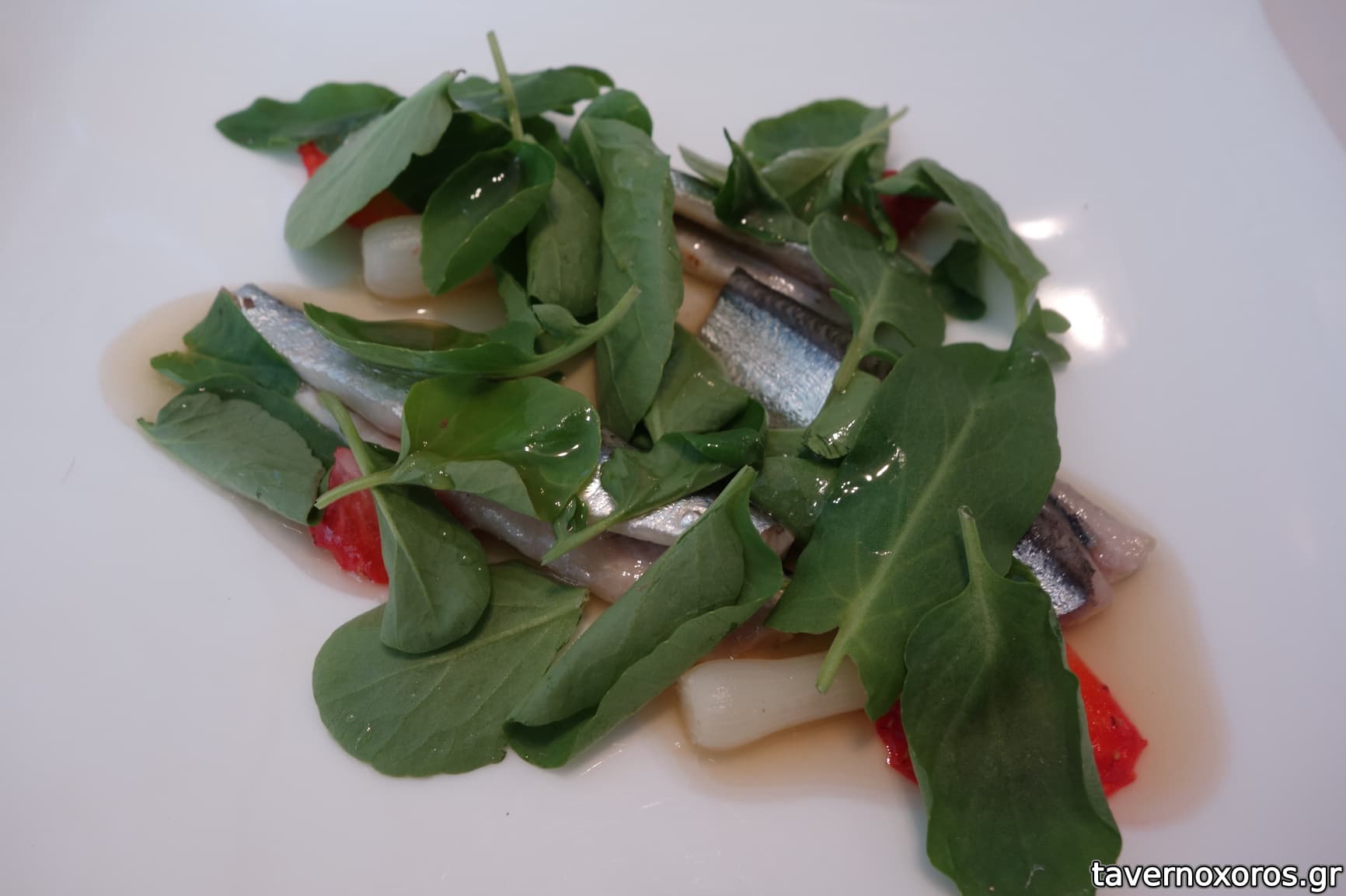 Product 3: "Anchovies, roasted strawberries and sour and spicy herbs" (πεντανόστιμες οι αντζούγιες, οι φράουλες ταιριάζαν πολύ καλά, όπως και η ρόκα που όμως επικάλυπτε λίγο τα προηγούμενα)