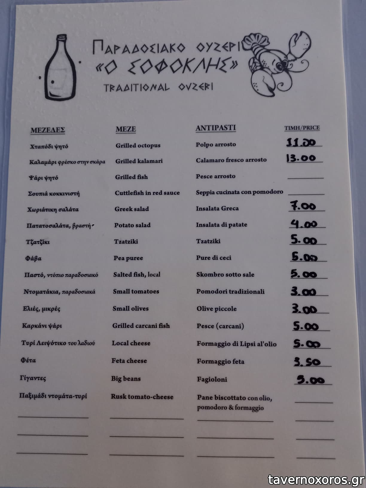 Έκατσα Ιούλιο 2015. Πρόκειται για το πιο όμορφο αισθητικά μαγαζί κατ'εμέ στο χωριό, μιας και έχει διατηρήσει τον καφενειακό του χαρακτήρα. Όπως όμως λέει και ο mike η μουσική του είναι απαράδεκτη και με υψηλή ένταση. Παρόλα αυτά κάτσαμε για τσίπουρο το οποίο ήταν μέτριο και το γυρίσαμε γρήγορα σε ούζο. Οι διάφοροι μεζέδες που πήραμε ήταν όλοι οκ χωρίς κάτι ιδιαίτερο (μόνο το σταμναγκάθι ήταν πολύ καλό). Χωρίς να είναι κάτι ιδιαίτερο, θα ξανακαθόμουν για έναν μεζέ λόγω χαλαρού κλίματος.