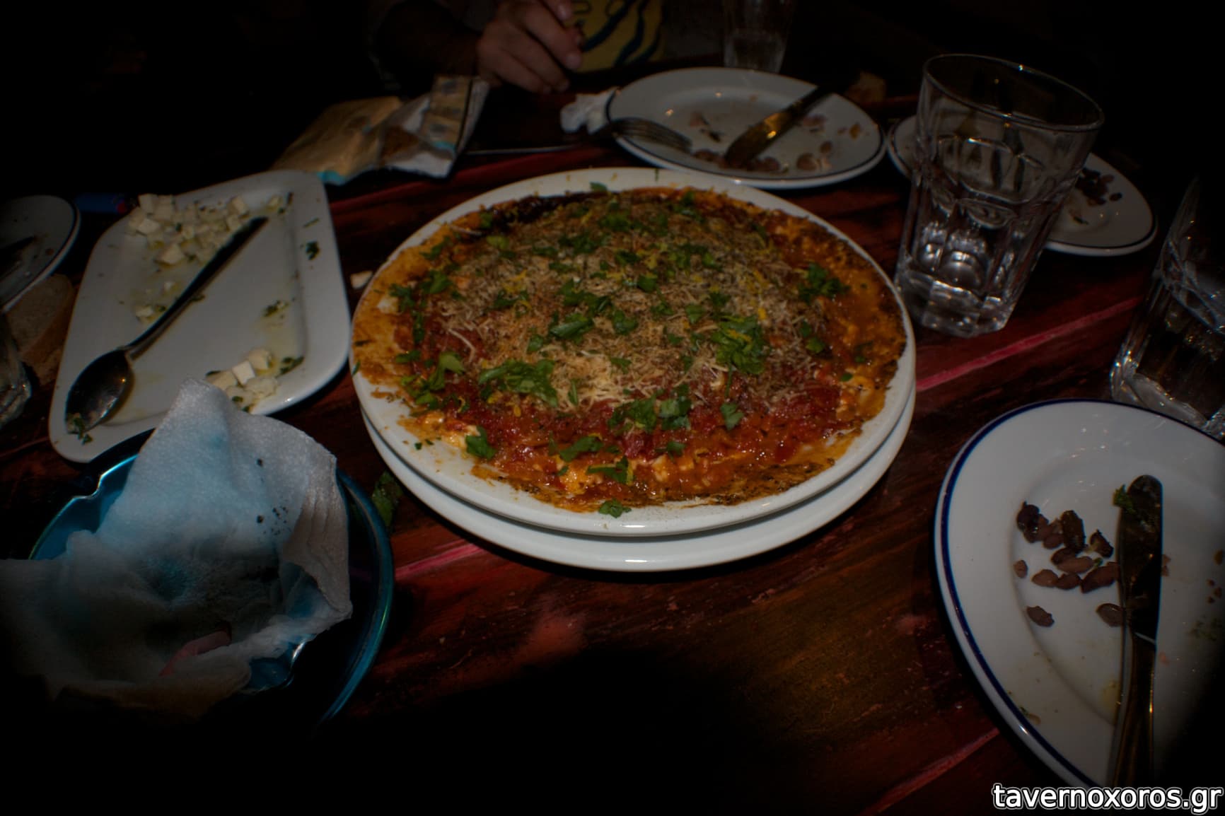 "Τρελόφετα" (φέτα, τυρί, λαχανικά στο τηγάνι, από τις "σπεσιαλιτέ" του μαγαζιού, πλάκα είχε)