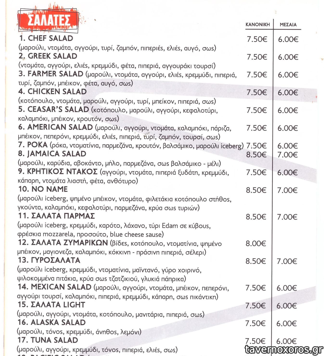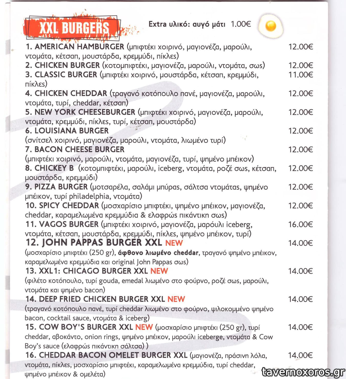 | Λέξεις κλειδιά | Αμέρικαν, #burgers, #club sandwich, #hotdog, #ντάκος, #καβουροκροκέτες, #γαριδομακαρονάδα, #μανιτάρια, #πεϊνιρλί, #ομελέτα, #κρουασάν, #ριζότο, #ζυμαρικά, #μακαρονάδες, #γύρος, #κοτόπουλο, #μπιφτέκι, #πανσέτα, #λουκάνικο, #ψαρονέφρι, #σκαλοπίνια, #σνίτσελ, #μπιφτέκι γεμιστό, #σουβλάκια, #σουτζουκάκια, #fried chicken, #γαρίδες, #σολομός, #σάντουιτς |