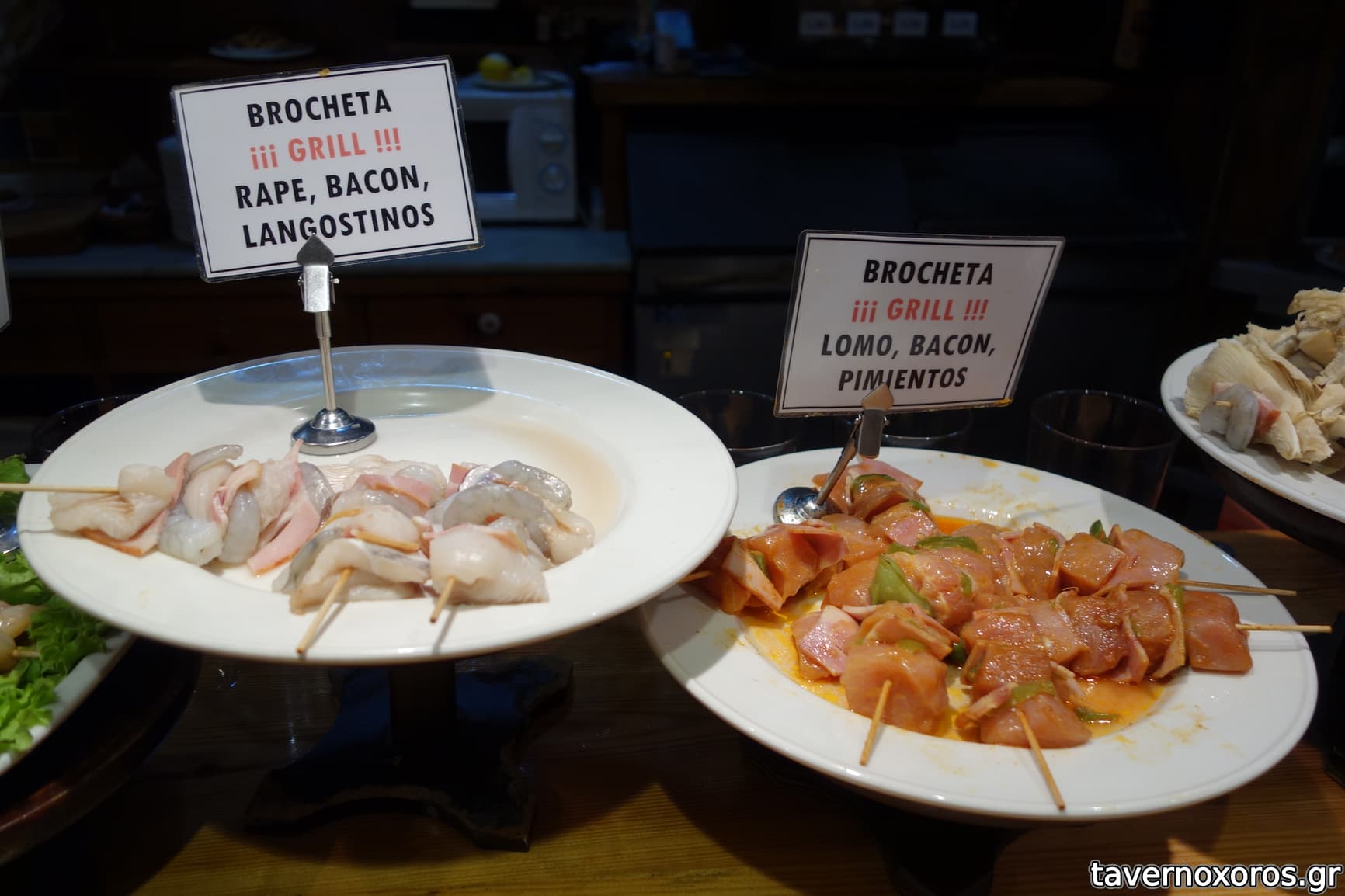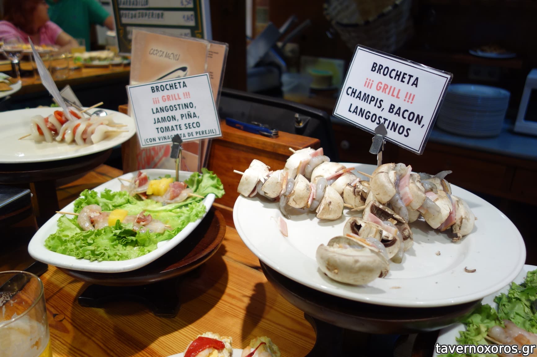 2 σουβλάκια "lomo" & 2 σουβλάκια με γαρίδες με μανιτάρια (καλά)