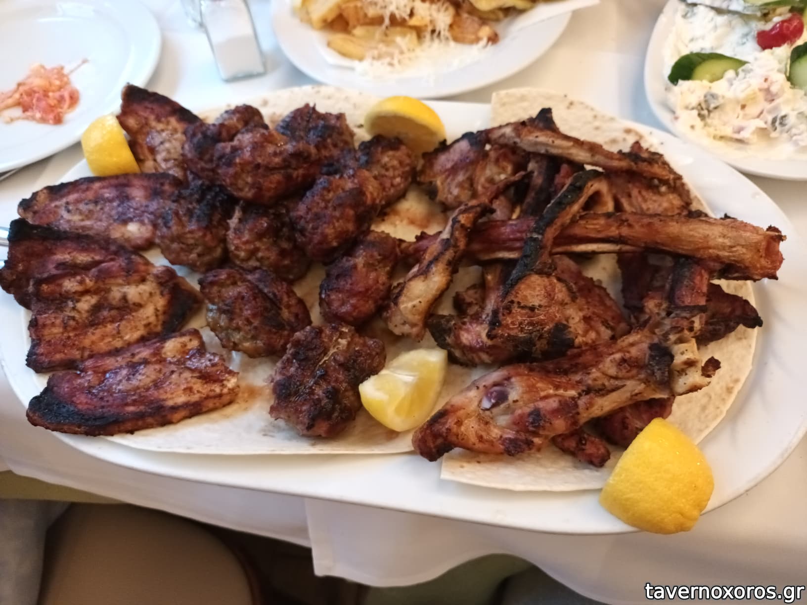 Μπιφτέκι οκ, τζιγεροσαρμάς καλός, λουκάνικο νόστιμο, πανσέτα οκ, μπριζόλα συμπαθητική. Πατάτες & κολοκυθάκια οκ (η σκορδαλιά αρκετά καλή), σαλάτες αδιάφορες, ψωμί ζεστό και καλό (όχι ο απαράδεκτος αφρός δηλαδή), τυροκαυτερή καλή.]