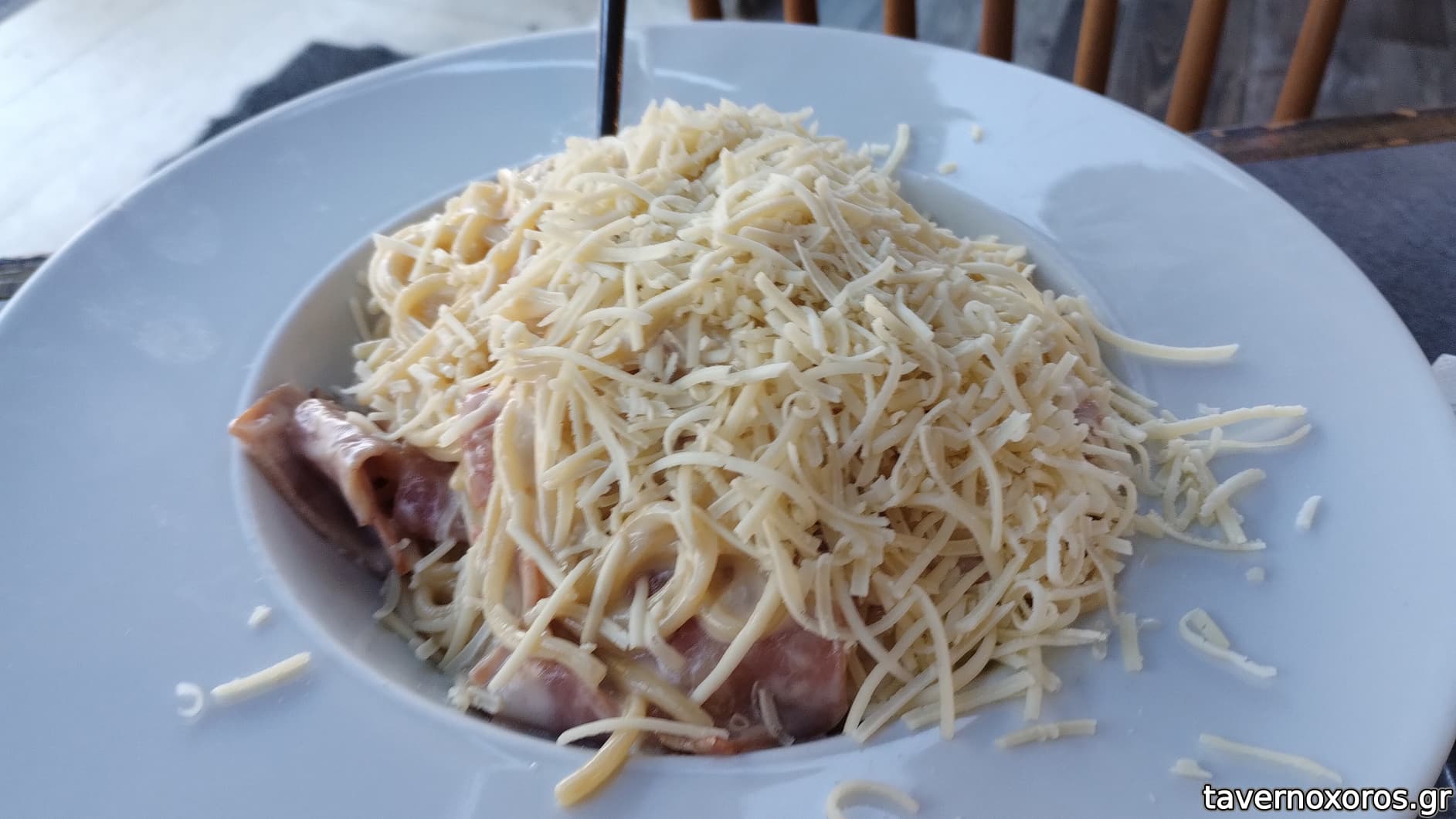 Μακαρονάδα καρμπονάρα (πίτα στην κρέμα γάλακτος. Πάλι μόνο ποσότητα)