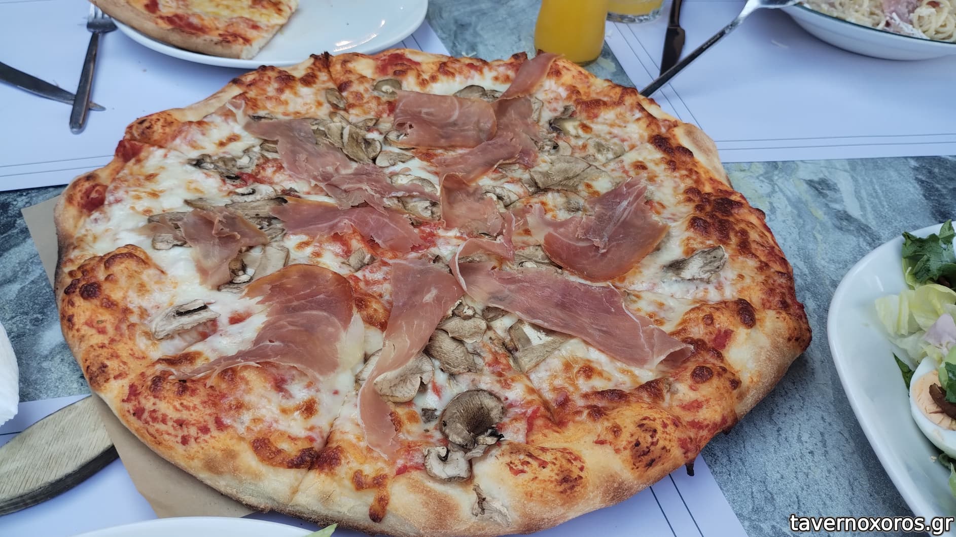 Pizza "Alitalia" με μοτσαρέλα και προσούτο (πολύ οκ)