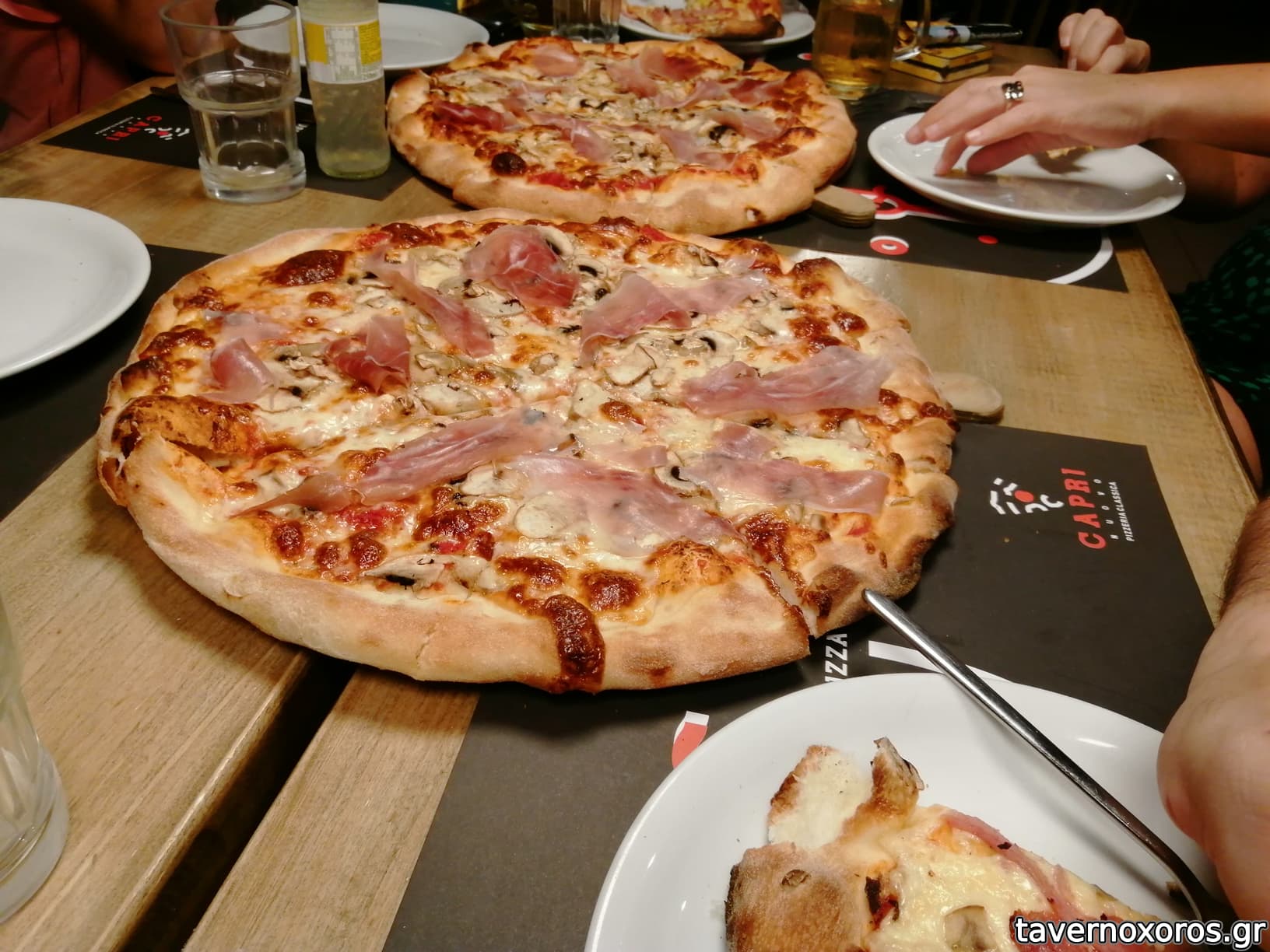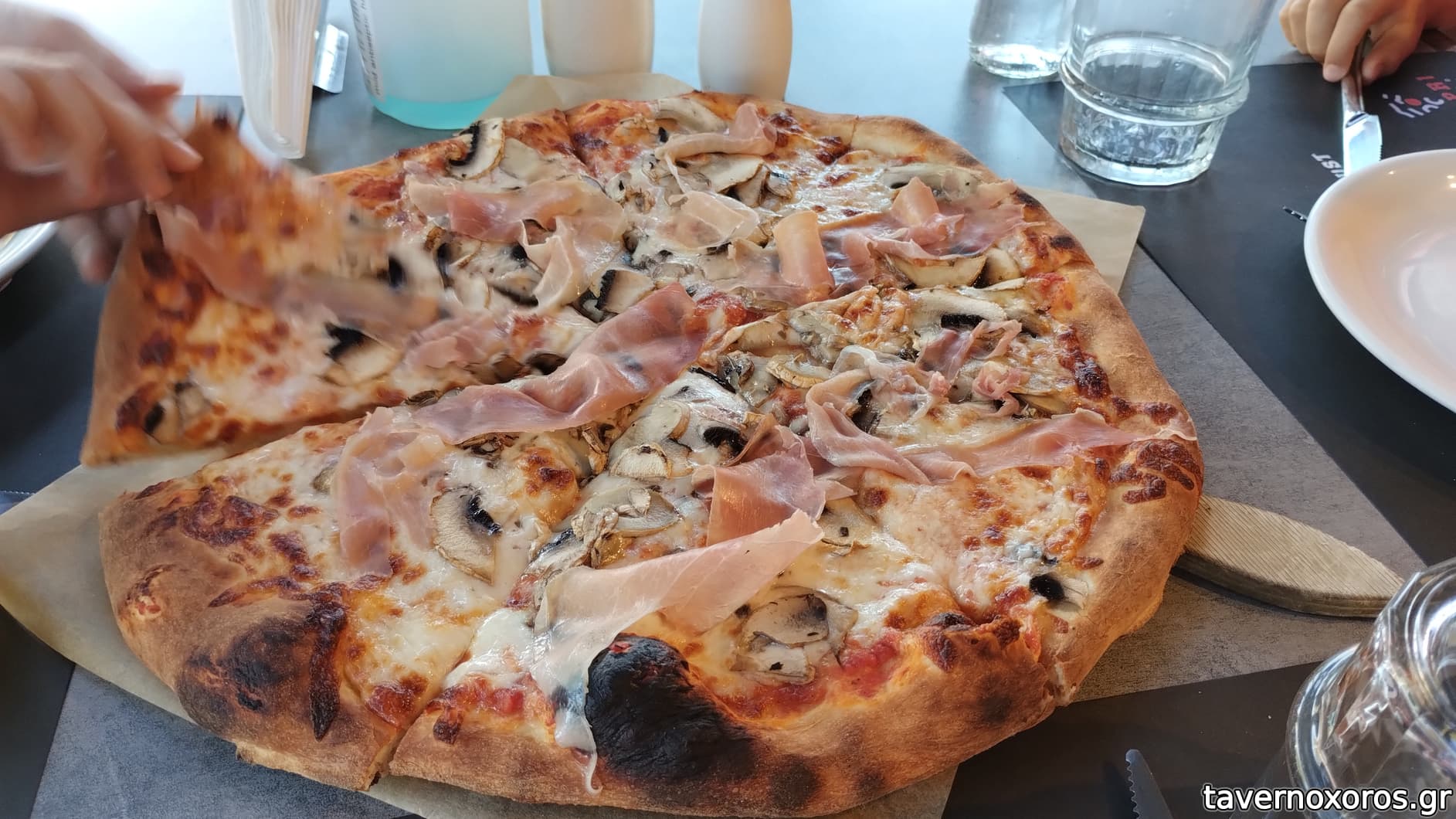Πίτσα Alitalia: μοτσαρέλα, προσούτο, μανιτάρια (μέτρια. Το προσούτο είναι ξένο σώμα: δε ψήνεται με την πίτσα και δεν κόβεται όταν την τρως. Αναγκαστικά το τρως χωριστά)