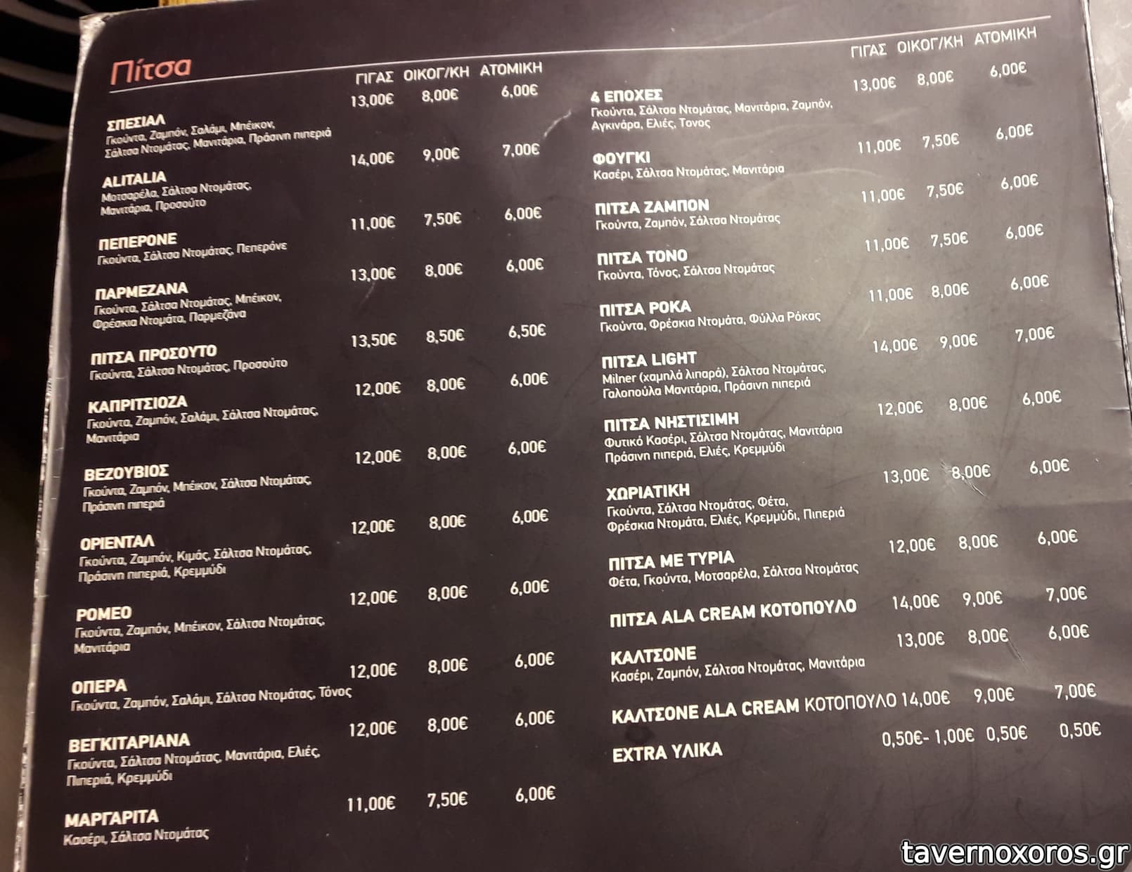 Τρία μεγέθη για πίτσες. Η «ατομική» (περίπου 6€) είναι για δύο καλοφαγάδες! Μου άρεσε η ποιότητα και πολύ καλές τιμές στις πίτσες και τα ποτά.