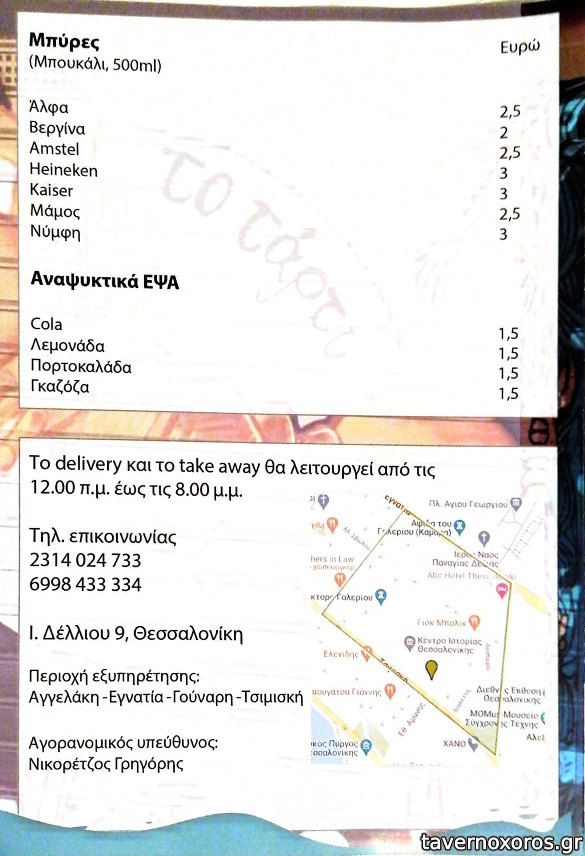 | Ώρες παραγγελίας | 12:00-20:00 |