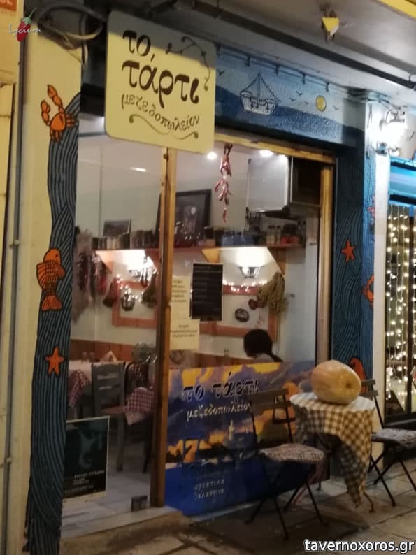 | Λέξεις κλειδιά | #take away, #πεζόδρομος, #εξωτερική θερμάστρα, #μωσαϊκό, #καβουροσαλάτα, #λαδοτύρι, #αρσενικό, #χαλούμι, #μπάτζος, #μετσοβόνε, #ομελέτα, #σύγλινο, #απάκι, #παστουρμάς, #καβουρμάς, #προσούτο, #ακροκώλιον, #φασόλια πιαζ, #ντολμαδάκια, #ρεβύθια, #μανιτάρια, #φασόλια γίγαντες, #κολοκυθοανθοί, #μελιτζανοκεφτέδες, #σαρδέλα Καλλονής, #οξύρρυγχος, #γριβάδι, #μύδια, #γάμπαρη, #μπάφα, #σουπιά κρασάτη, #χταπόδι στιφάδο, #θράψαλα, #γαρίδες, #σαρδέλα, #γαλέος, #χταπόδι, #αρνάκι γάστρα, #τηγανιά, #κεφτεδάκια, #σουβλάκια, #σουτζουκάκια, #μπιφτέκι, #πανσέτα, #λουκάνικο, #χοιρινή, #ζυγούρι, #παϊδάκια, #γλώσσα μοσχαρίσια, #μάγουλα, #μπεκρή μεζές, #κόκορας κρασάτος, #κότσι, #λαχανοντολμάδες, #φρικασέ, #σφουγγάτο, #σπανακοκεφτέδες |