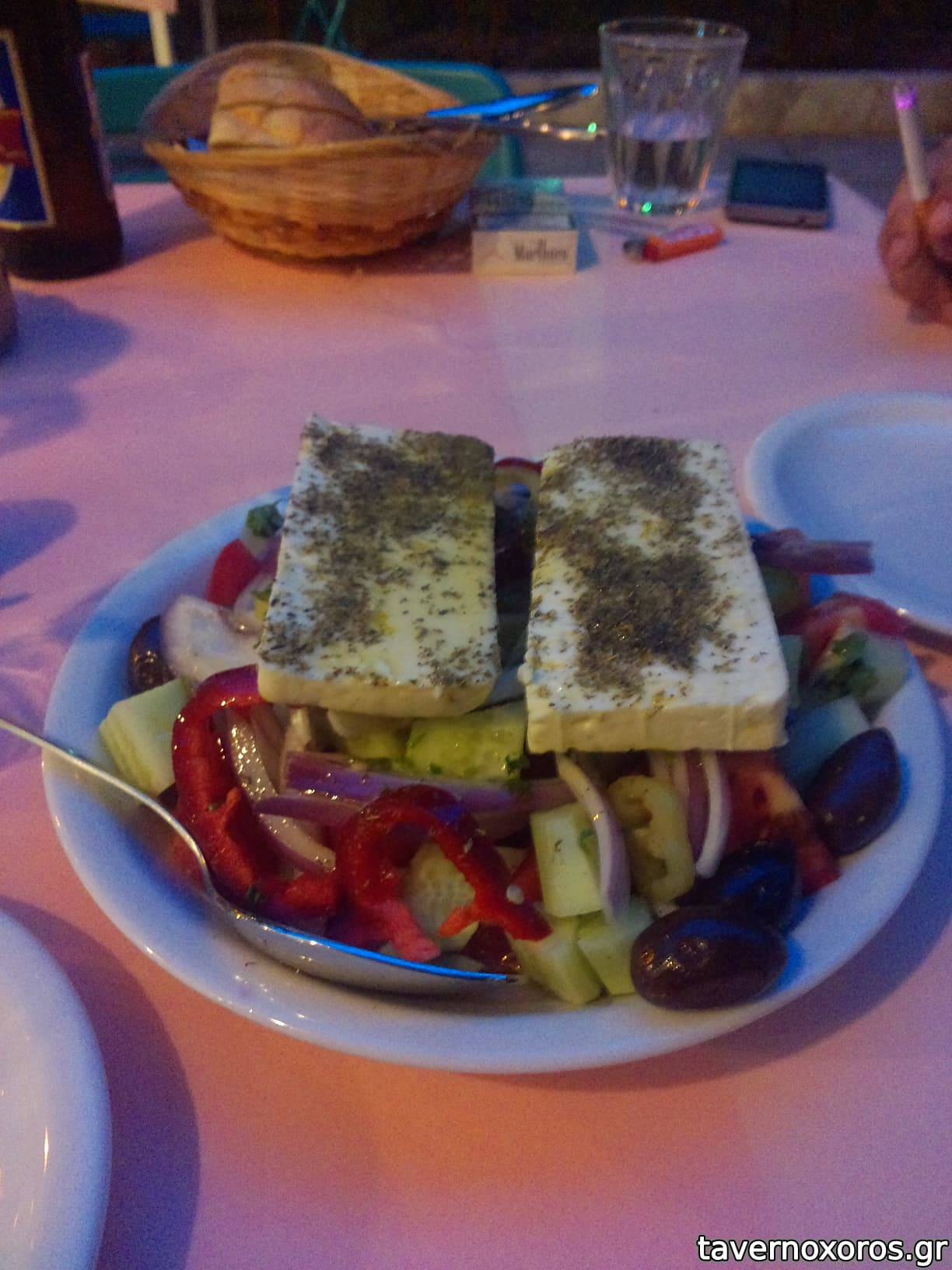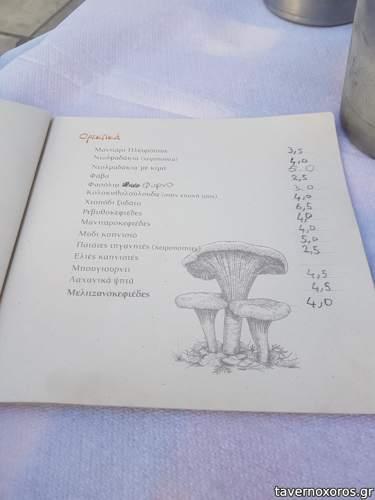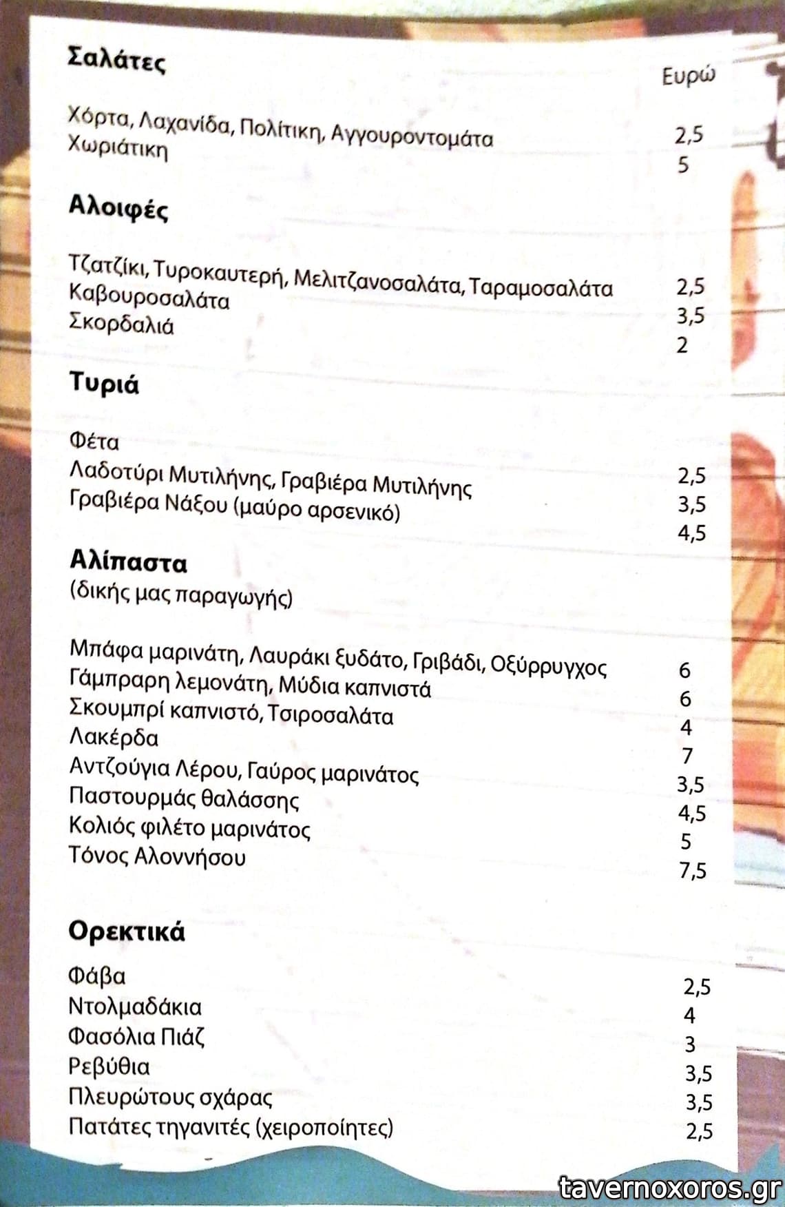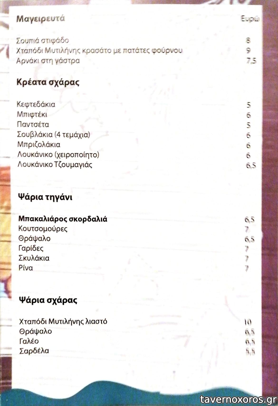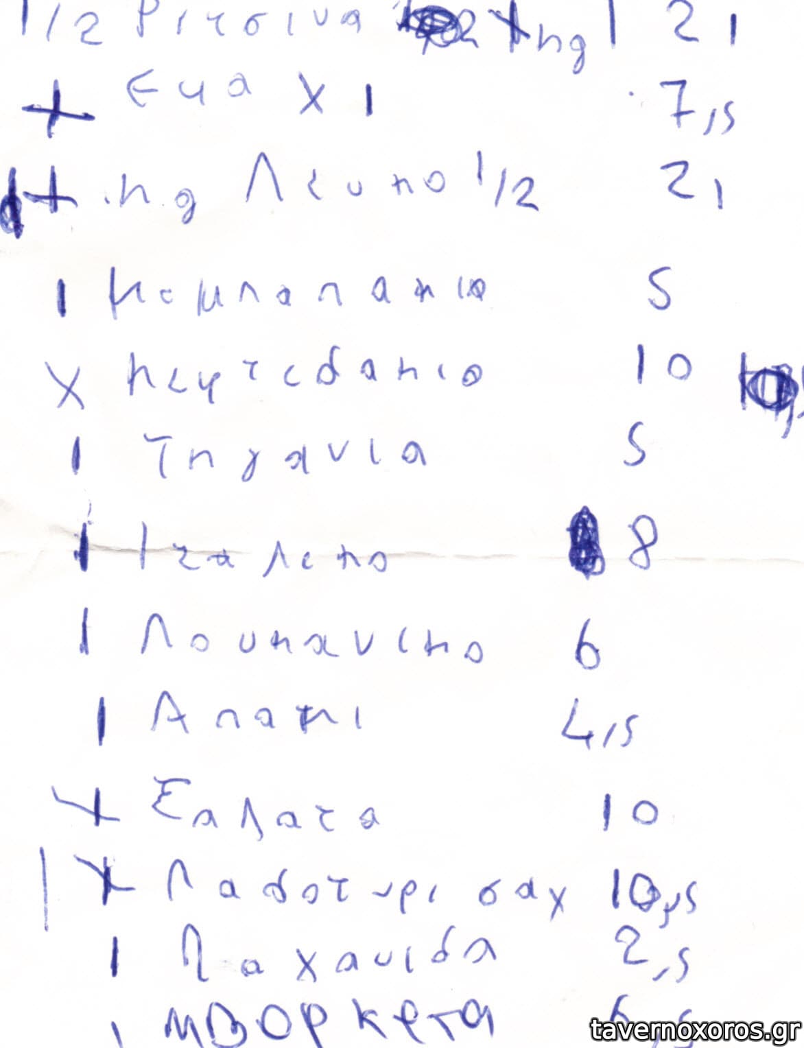 ενδεικτικα: μαγουλα μοσχαρισια, κεφτεδες, τζατζικι, πατατες, μαυροματικα, 2 μπυρες και 1 κιλο κρασι 31€