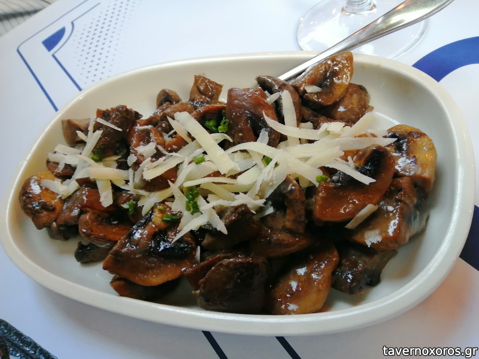Ωραία χόρτα, νόστιμα μανιτάρια σωτέ, καλές πατάτες τηγανιτές. Το κόκκινο ημίγλυκο το κατεβάσαμε άνετα.