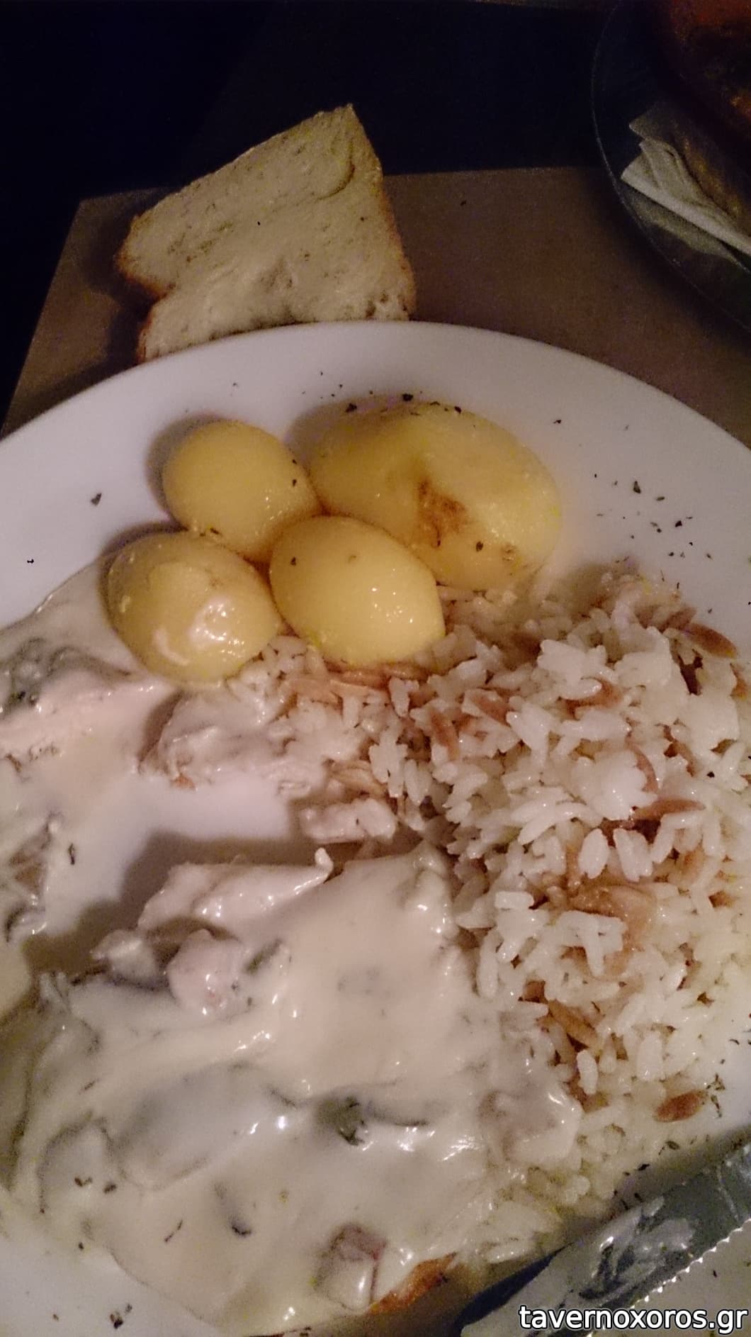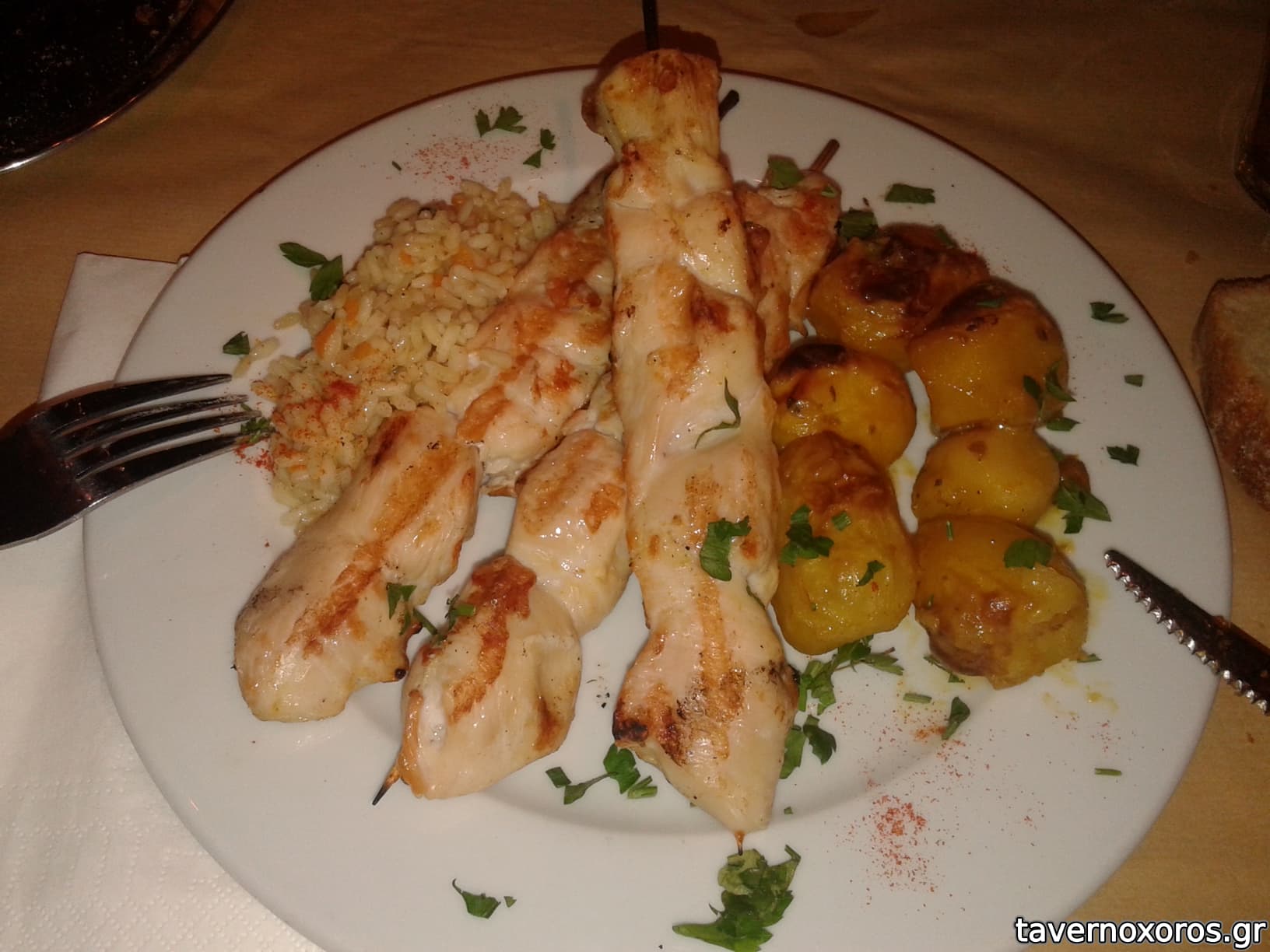 -Κεμπαπ κοτοπουλο. Ψιλο φλατ γευση, αλλα μαλακο και καλοψημενο. Με συνοδευτικες ουδετερες πατατες φουρνου.