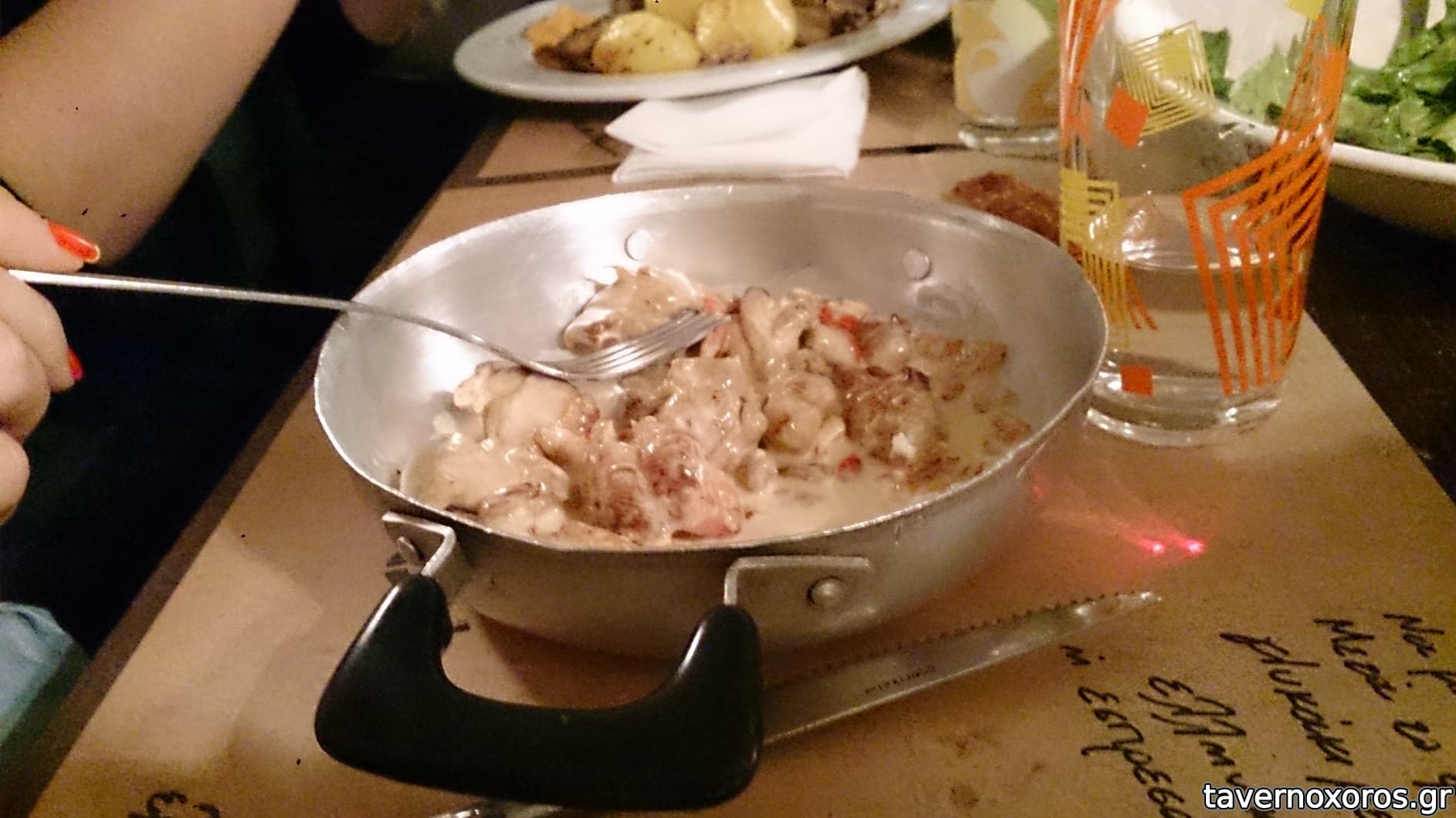 Η ποιότητα,απο τα λίγα πιάτα που δοκίμασα μου φάνηκε παρόμοια με το άλλο μαγαζί.Υπάρχουν αρκετά περισσότερα πιατα, όπως το "ζυμωτό" με κίμα που δοκίμασα(βλ φωτο),καλό ήταν, το οποίο γίνεται στον πετρόφουρνο του μαγαζιού. Επίσης εδώ υπάρχουν και εμφιαλωμένα κρασιά(μάλιστα η σερβιτόρος πρωτου παραγγείλουμε το χύμα λευκό κρασι 750ml=2,60€ μας είπε οτι προτείνει για σήμερα μοσχοφίλερο.δεν σχολιάζω..)