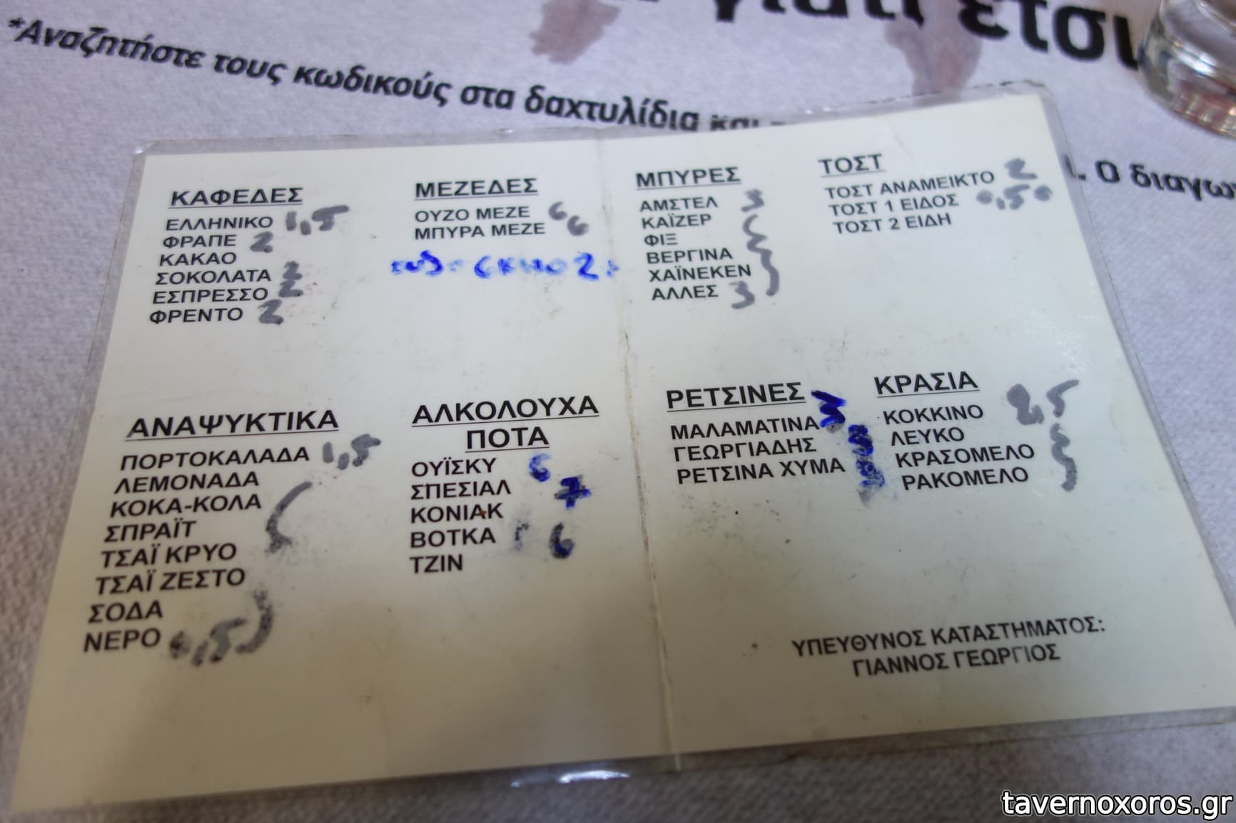 - Έχει πολύ λίγα φαγητά, 2-3 κρεατικά και ενίοτε κανένα ψαρικό. Ότι δοκιμάσαμε ήταν καλό. Το τσίπουρο άνευ που βγάζει σε μπουκαλάκι 50αράκι, ιδιαίτερο και καλό.