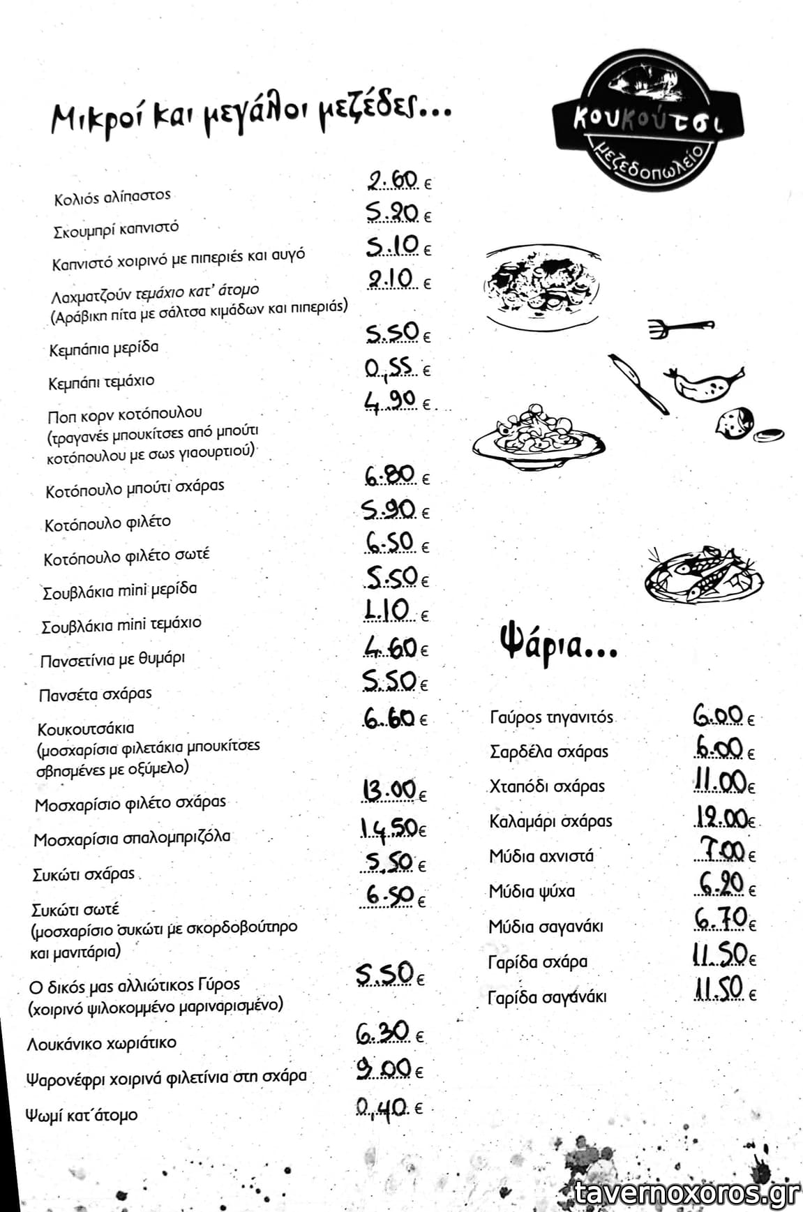 Γρήγορη και ευγενική εξυπηρέτηση, μεγάλες μερίδες (πρώτη φορά βλέπω μερίδα κεμπάπια με 10 τεμάχια) και οι τιμές καλές. Δοκιμάστηκε μια πράσινη σαλάτα με σπανάκι και λευκό τυρί, κεμπάπια, συκώτι κρασάτο και εξαιρετικές πατάτες τηγανιτές, κομμένες λεπτές σαν πατατάκια ruffles, όλα πολύ νόστιμα! Το χύμα κρασί απλώς αποδεκτό. Απόδειξη κανονικά, αξίζει μια επίσκεψη.
