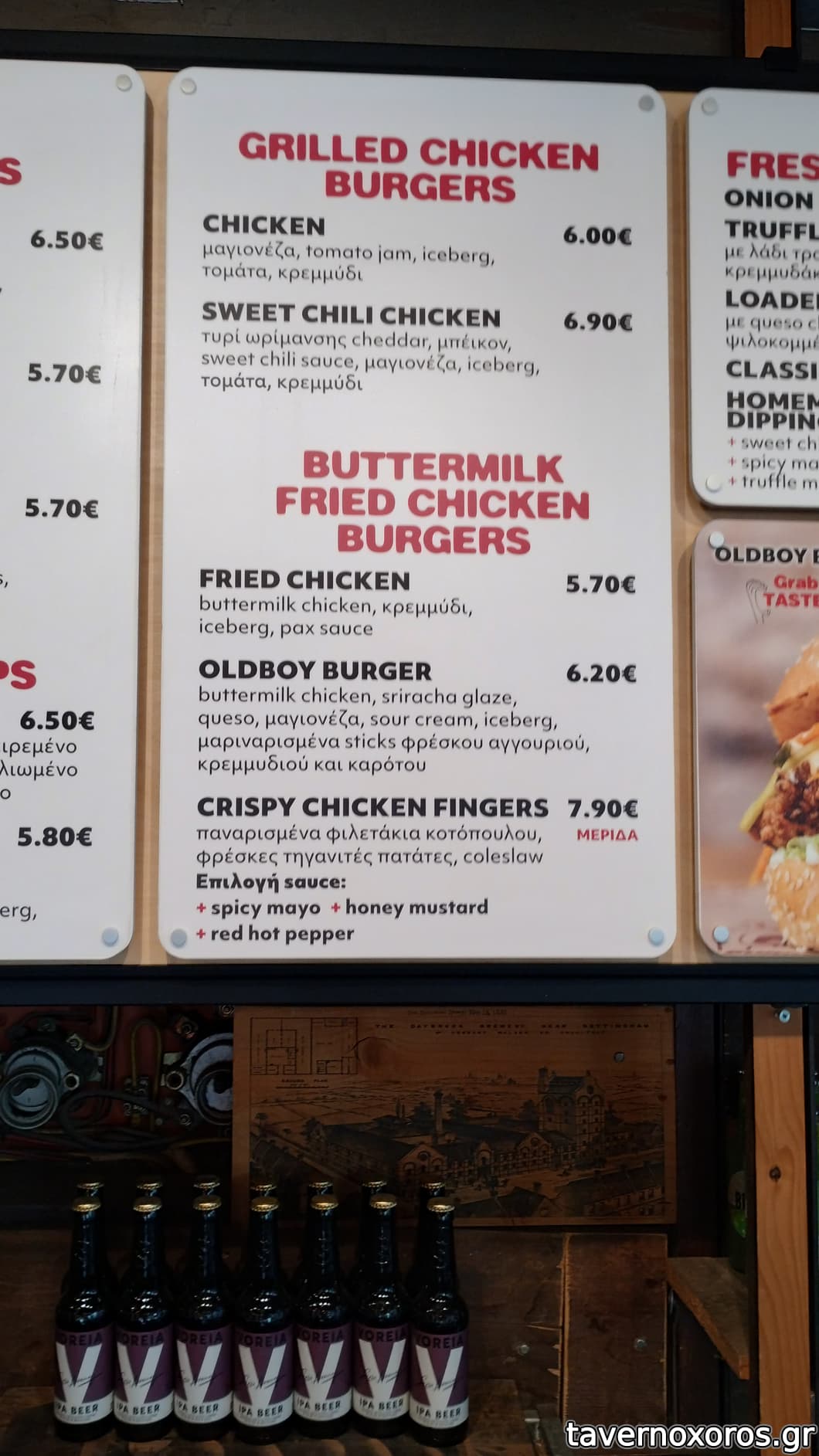 Old boy burger (buttermilk fried chicken. Καλό, ζουμερό)