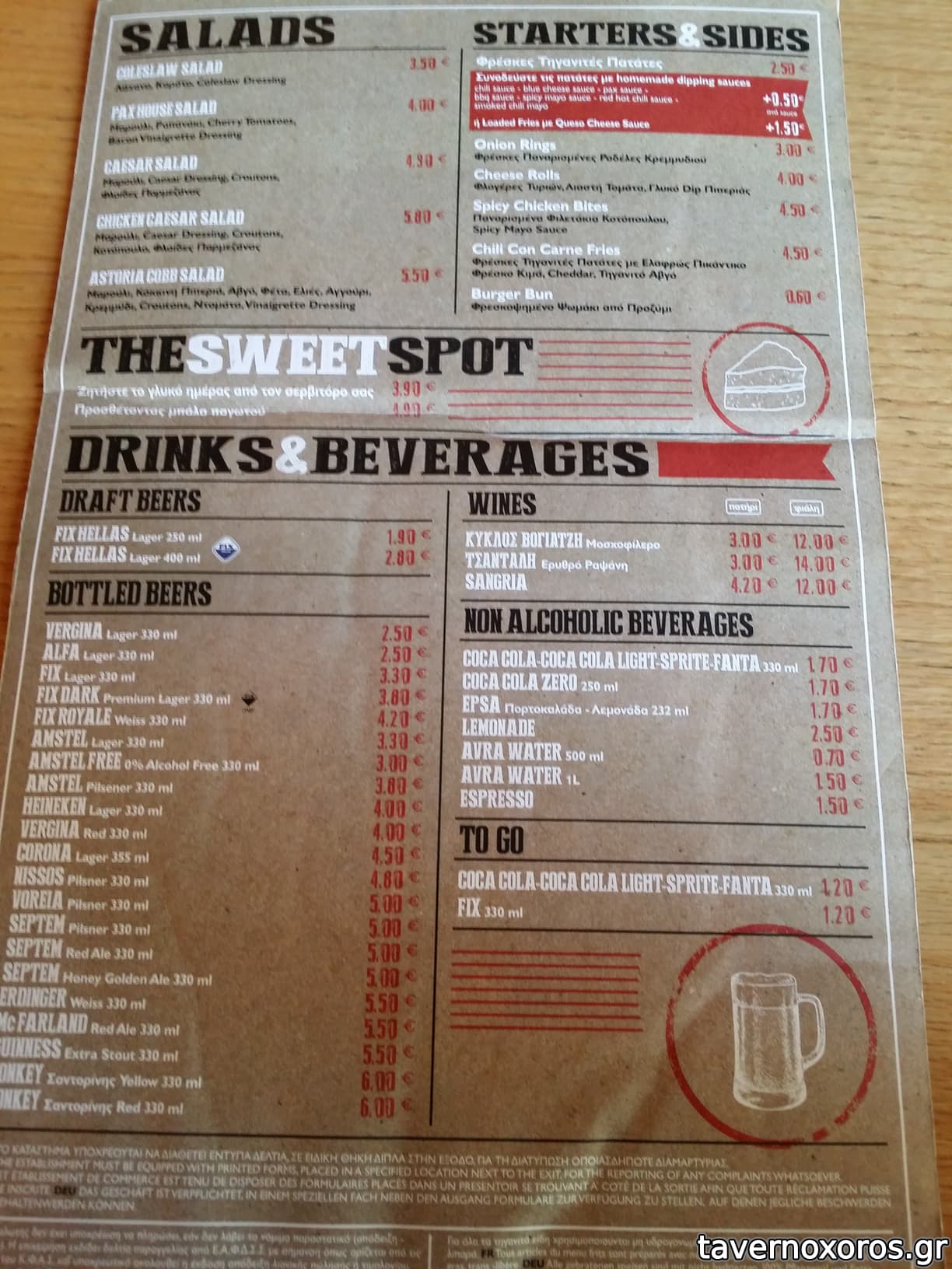 Όσον αφορά το μενού, αρκετά ευρηματικό μετά τις νέες προσθήκες, και επίσης υπάρχει μενού προσφοράς 11-2 το βράδυ, το οποίο παρ'