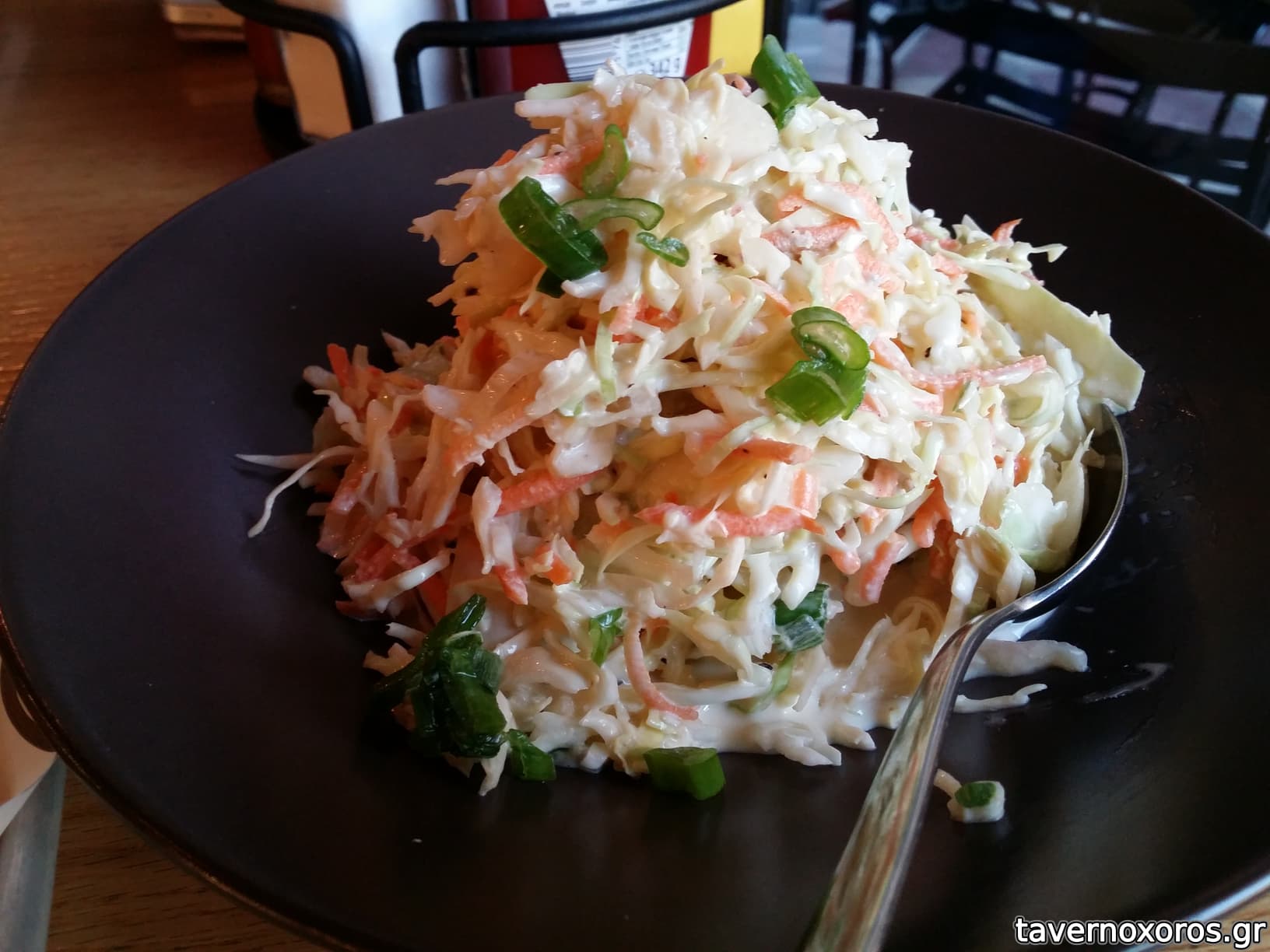 Μου αρεσει πολυ η σαλατα κωλ σλοου τους, αλλα και τα ονιον ρινγκς.