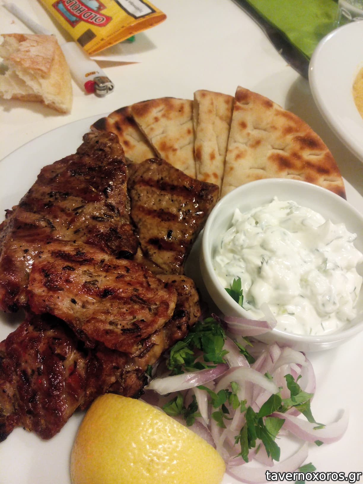 "Χοιρινά μπριζολάκια στη σχάρα με πιτούλες και τζατζίκι"
