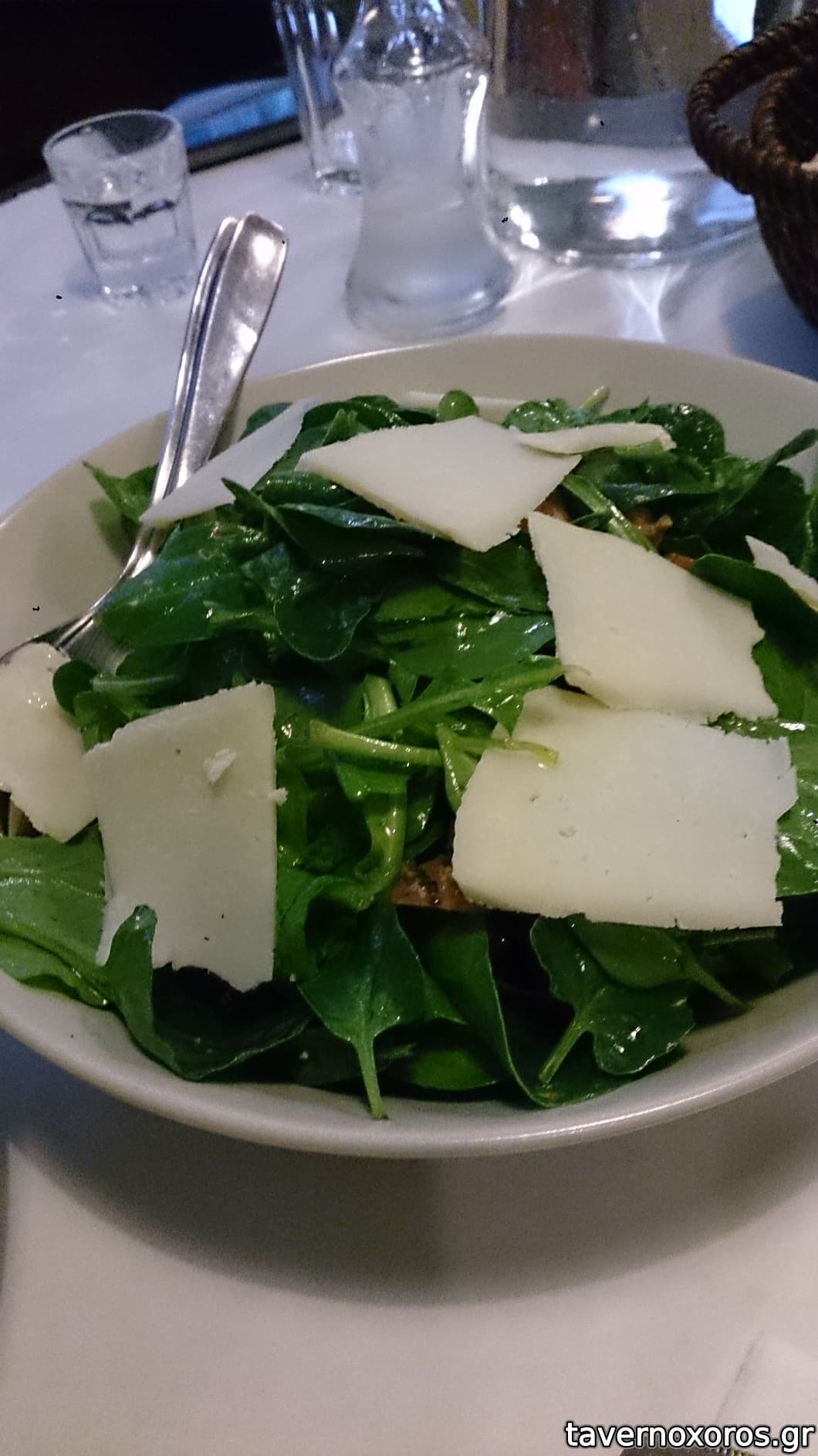 "Σπανάκι, ρόκα με σύγλινο Μάνης και λαδολέμονο με πορτοκάλι"