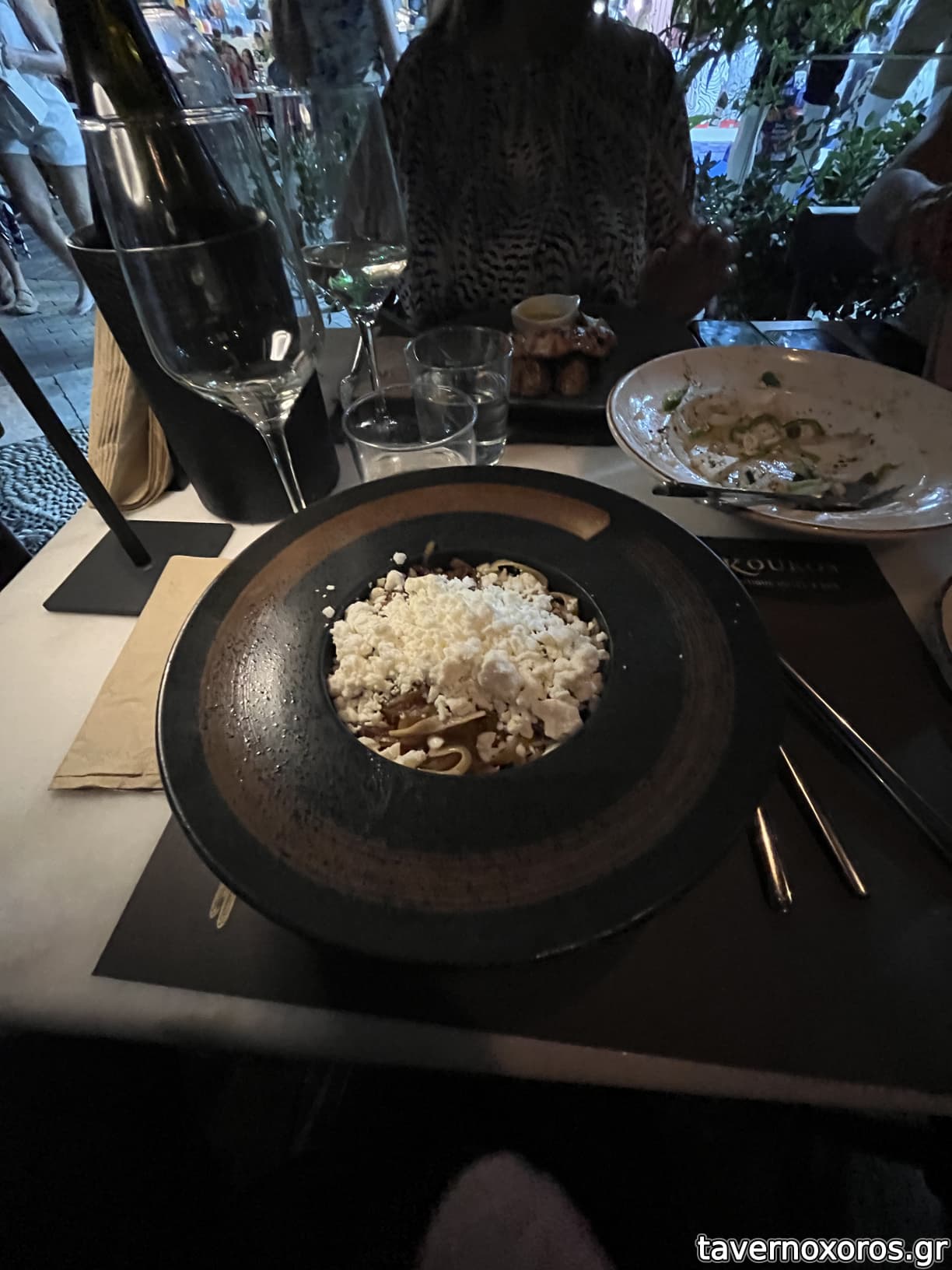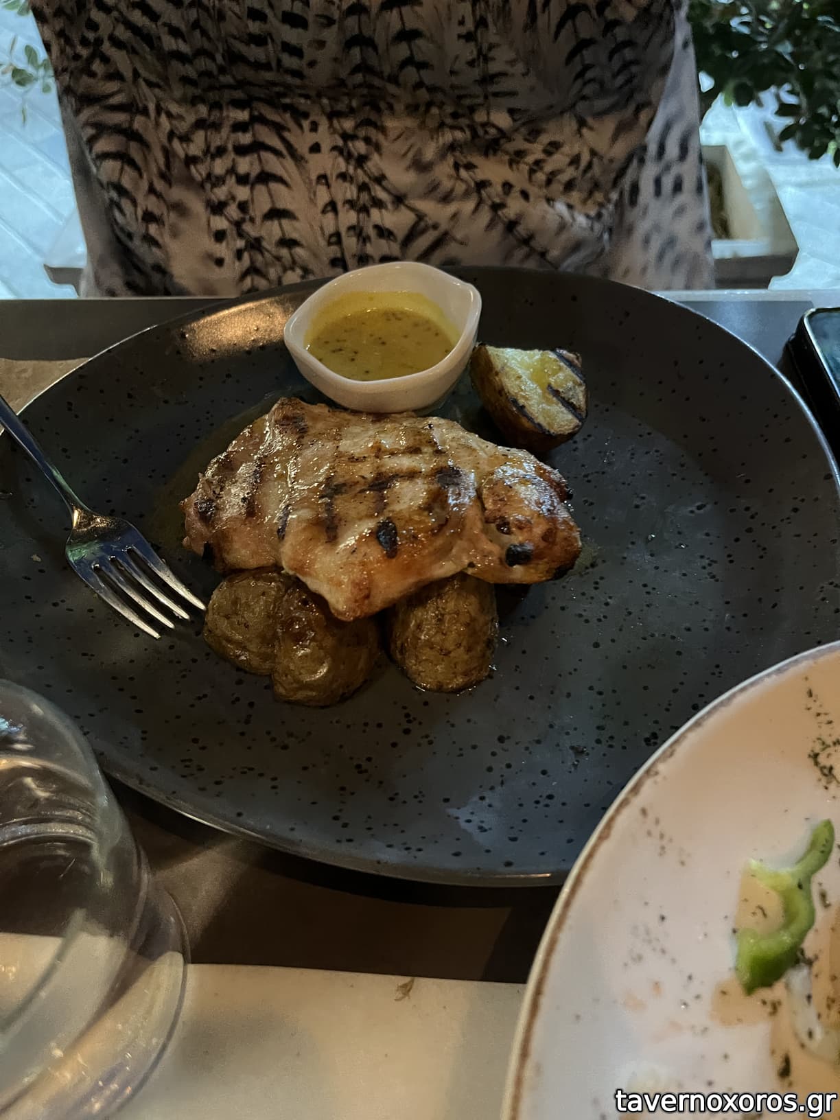 Όμορφο μαγαζί στον πολυσύχναστο πεζόδρομο, με μικρότερα δωμάτια στο εσωτερικό του και ωραίο εξωτερικό χώρο με λουλούδια από πάνω. Δύο άτομα παραγγείλαμε σαλάτα Κούκος (οκ), μανιτάρια γεμιστά με γύρο (!!!), πατάτες στον ξυλόφουρνο με συνοδεία κάτι σαν τυρί κρέμα (μέτριες), τσιπούρα (αλανιάρα σύμφωνα με τον σερβιτόρο) και κοτόπουλο στη σχάρα (φιλετάκια από μπούτι). Τα δύο τελευταία άνευ γαρνιτούρας. Μαζί με δυο μπύρες στα 50€. Τσιμπημένες τιμές, καλές ποσότητες. Μία επίσκεψη την αξίζει.