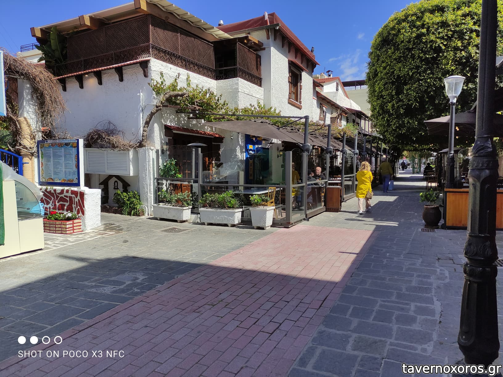 Πολύ καλό εξωτερικό χώρο σε ένα πλακόστρο πολύβουο πεζόδρομο.