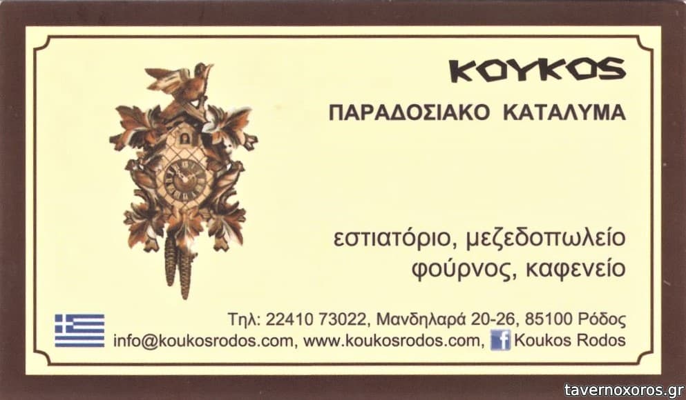 Ο Κούκος είναι ένα μικρό ξενοδοχείο με εστιατόριο.