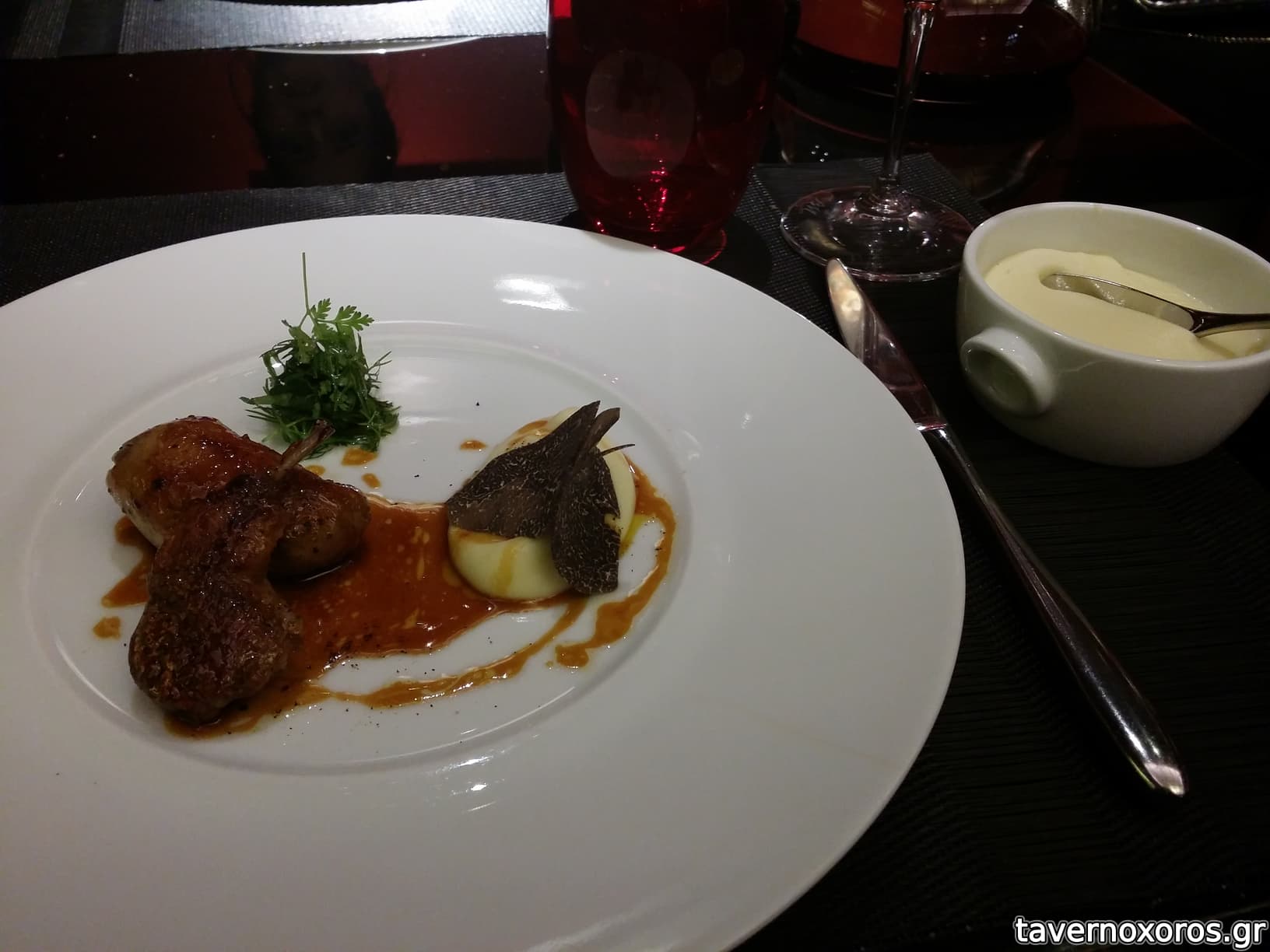 γενικά κινείται σε λιγότερο δημιουργικά πιάτα σε σχέση με άλλα. εδώ μιλάμε για τις αρχές της Γαλλικής κουζίνας σε 1ο πλάνο. το highlight (που έδωσε και τα αστέρια στον σεφ...) είναι ο συνοδευτικός πουρές που έρχεται με κάθε κυρίως πιάτο...