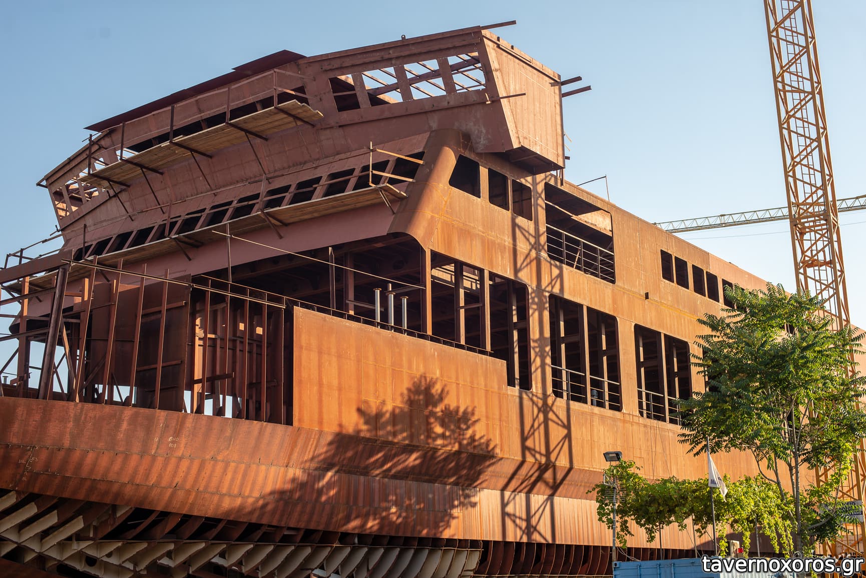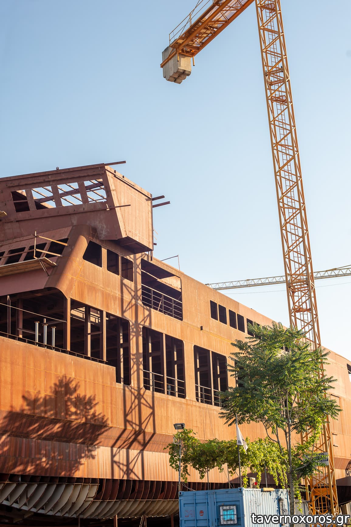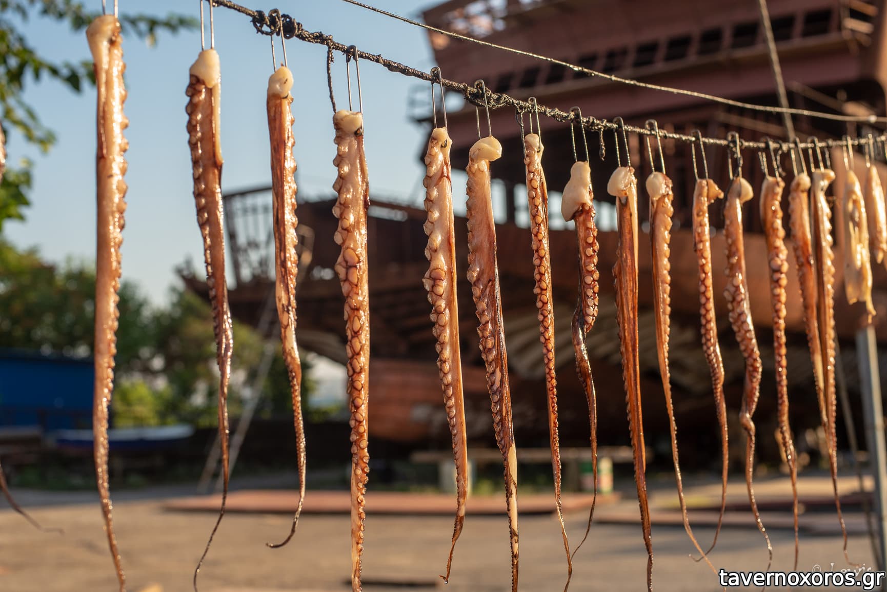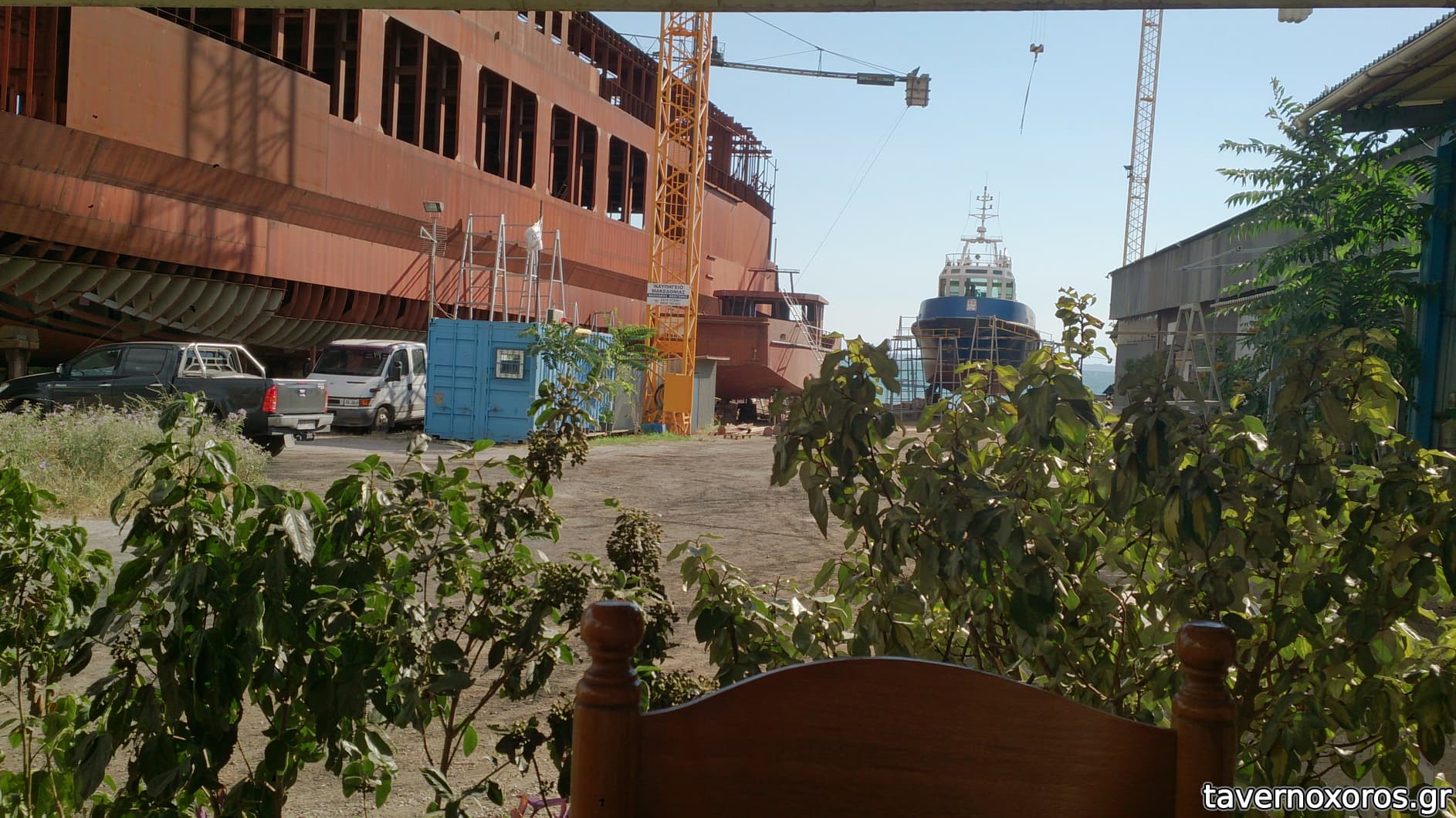 Αλλά το μαγαζί είναι ότι είναι δίπλα στο σκαρί ενός πλοίου. Μερικά μέτρα από τις επισκευές των πλοίων. Ανάμεσα στους εργάτες. Γι αυτό πας, γιατί αυτό το κάνει αλλιώτικο από ένα ακόμα ουζερί.