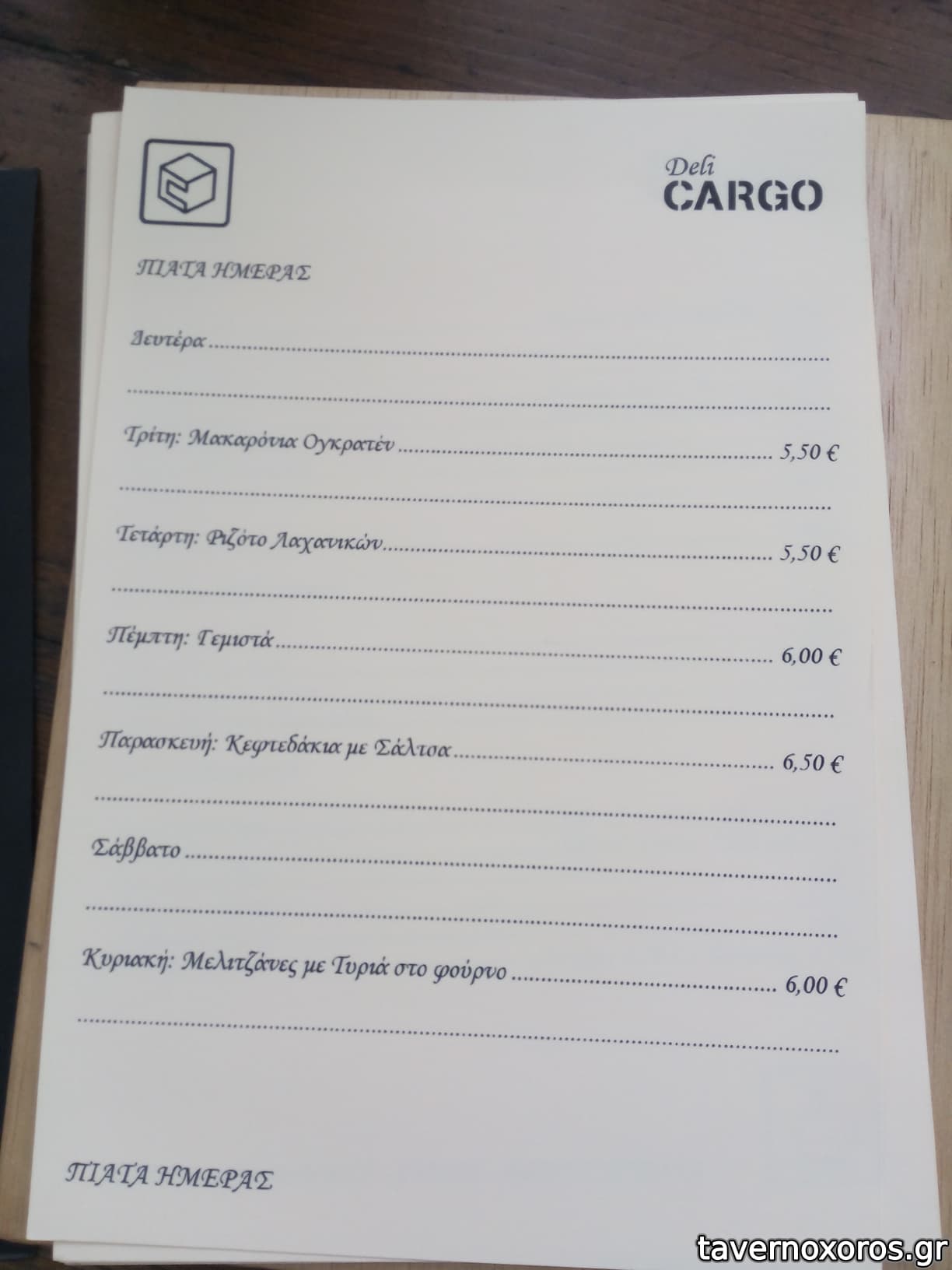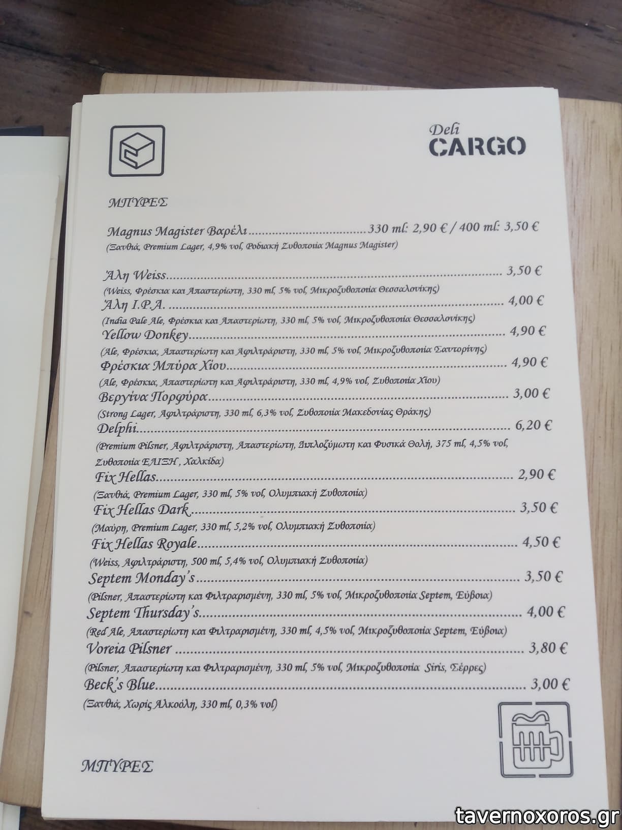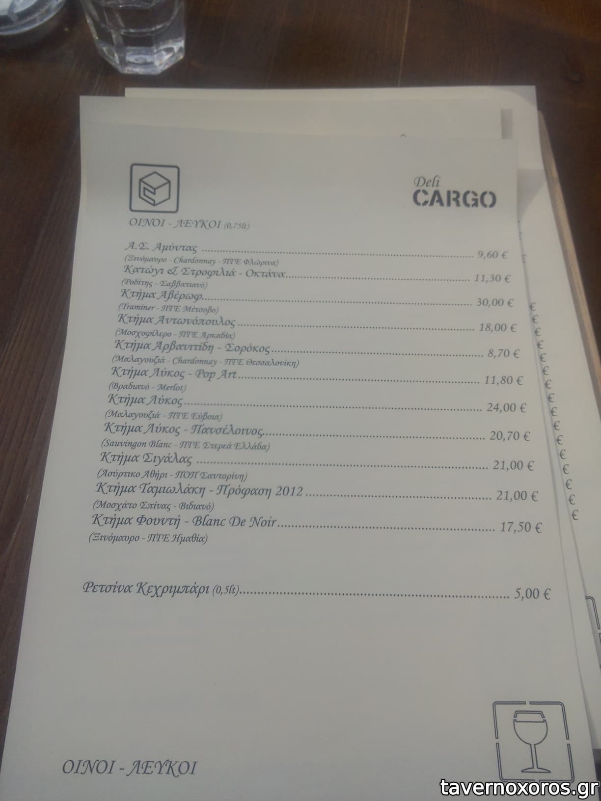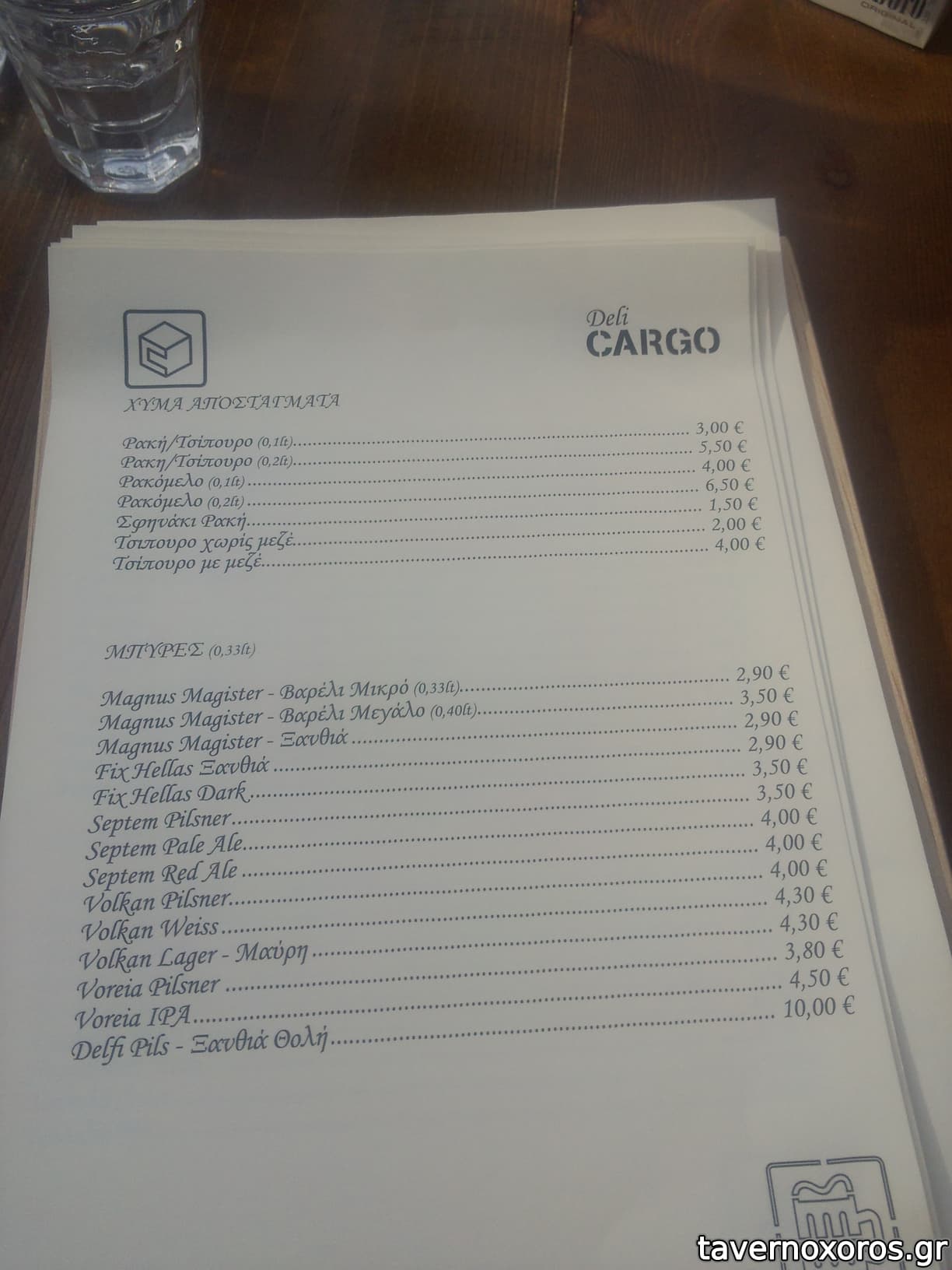 - Έχει καλή ποικιλία σε ούζο και λοιπά αλκοολούχα. Εξαιρετική ρακή. Αξίζει να δοκιμάσετε το αρκετά ενδιαφέρον κρητικό λευκό κρασί Ταμιωλάκη που παράγει συγγενής της ιδιοκτησίας. Από φαγητά έχει μικρή ποικιλία, τα περισσότερα είναι πρώτες ύλες, δηλαδή τυριά-αλλαντικά κτλ και μεζεδάκια. Από ζεστά, έχει τηγάνι και φούρνο, όχι σχάρα.