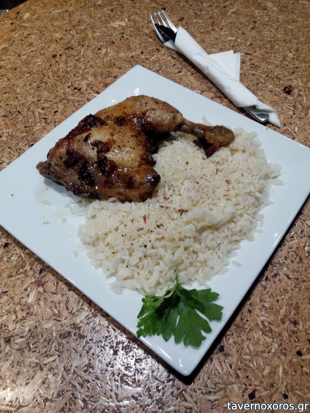 Κοτόπουλο με ρύζι (πιάτο ημέρας, το κοτόπουλο εξαιρετικό)