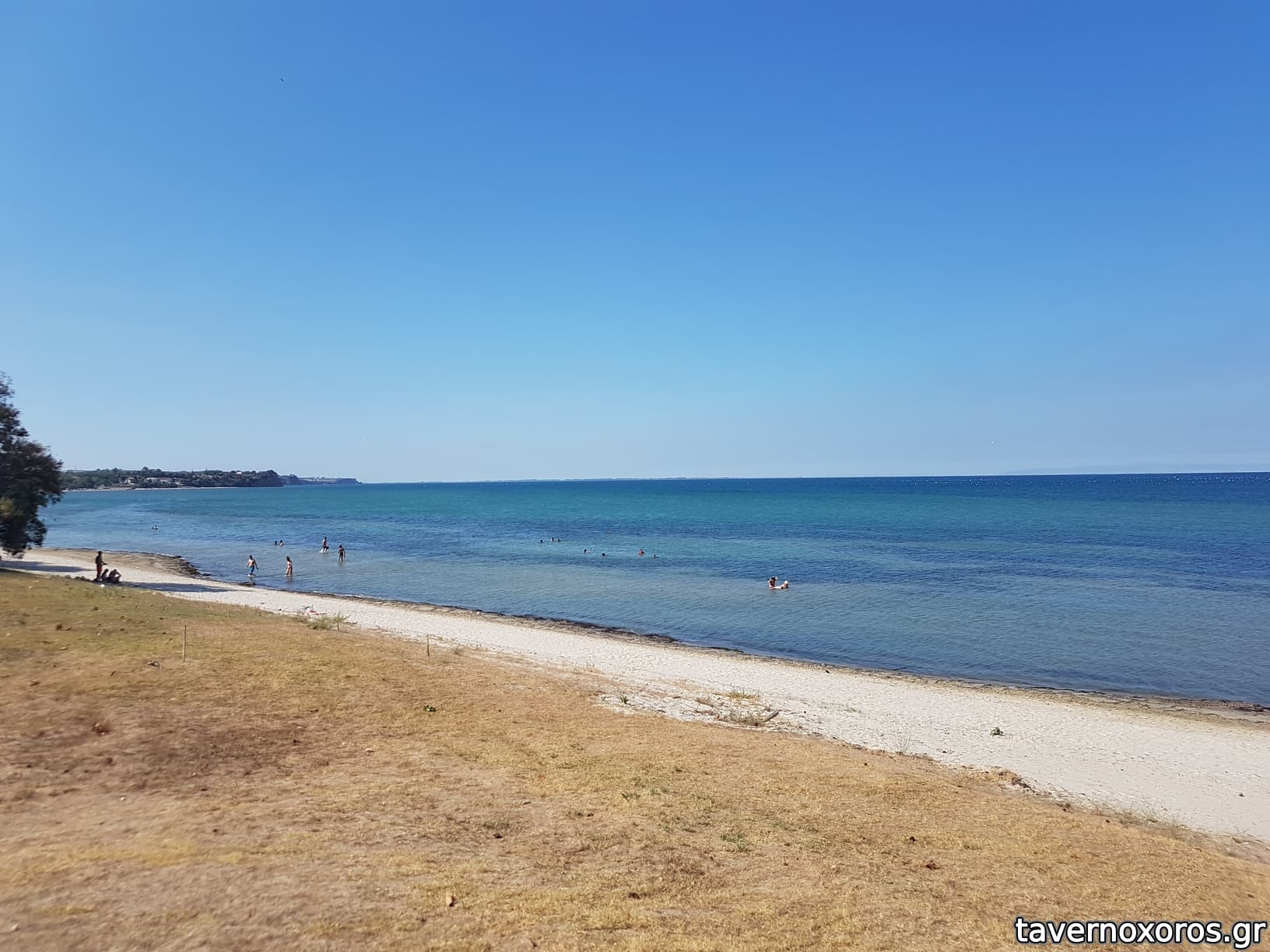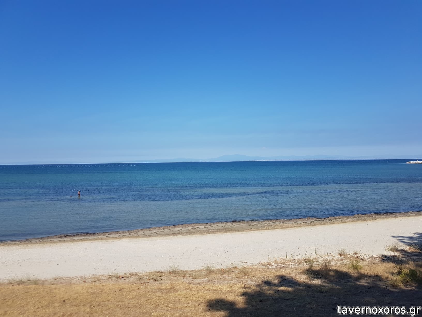 Η παραλία μπροστά από την ταβέρνα (στο βάθος φαίνεται ο Χορτιάτης)