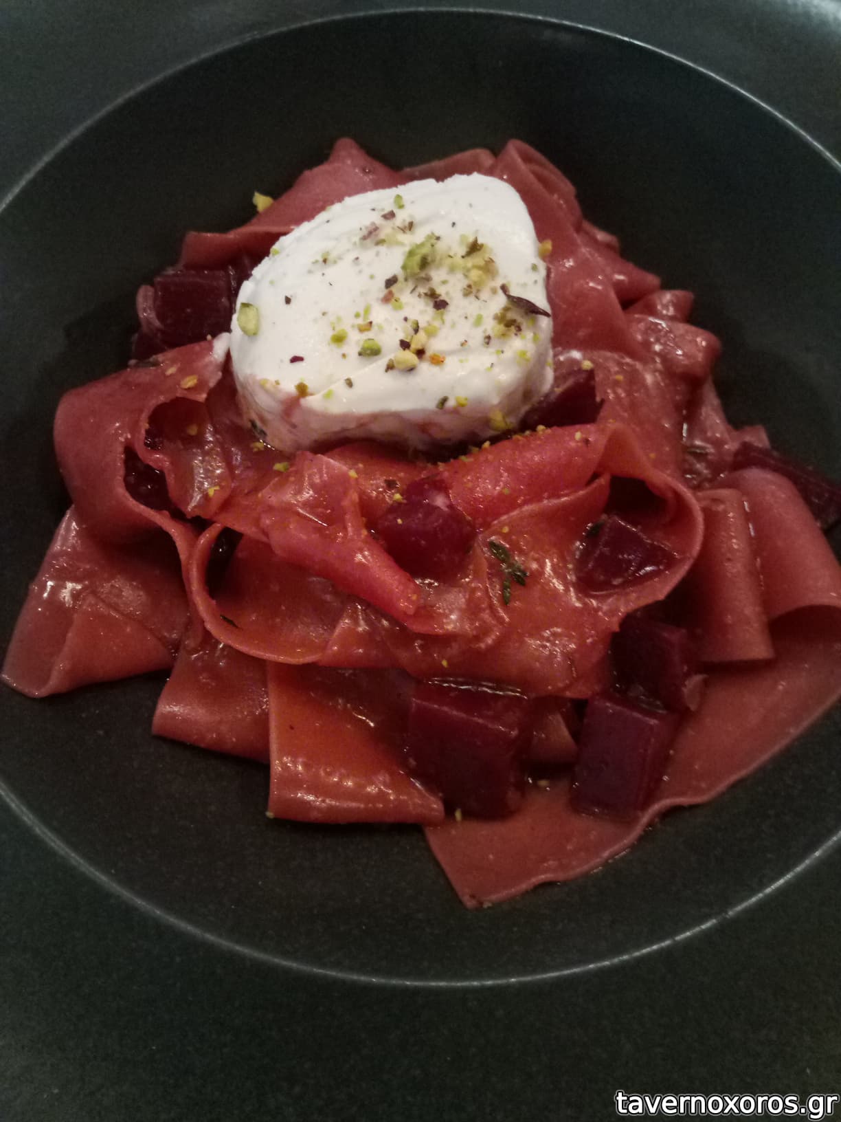 Ροζ παπαρδέλες με παντζάρι και τυρί (καλό πιάτο, εντυπωσιακό)