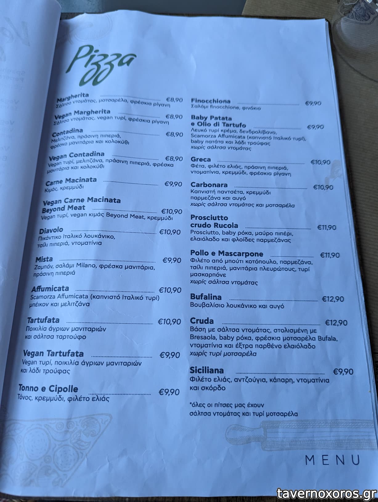 Μια πίτσα cruda (με ρόκα, ντοματινια, μοτσαρέλα, προσούτο στα 14€) , νιοκι γκοργκοντζολα (γκοργκοντζολα, αχλάδι, καρύδι στα 13€) και ημίγλυκο ροζέ κρασάκι. Μεγάλες μερίδες και για εμάς που είμαστε και λιτοδιαιτοι μας φτάνουν και σκαμε κιόλας (παλιότερα περνάμε και τρίτο πιάτο - σαλάτα η κάτι άλλο - αλλά πάντα λέγαμε γιατί το πήραμε..).