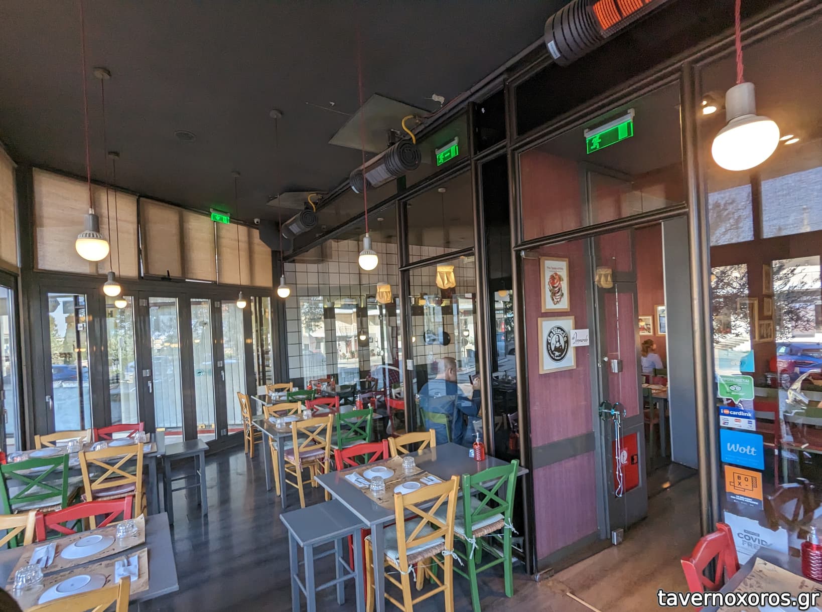Απ την μια, το περιβαλλον, παραπεμπει σε φτηνιαρικο ταβερνειο, χωρις κατι το ιδιαιτερο. Ασχημη εντυπωση το ασχημο υλικο της επιφανειας των τραπεζιων, που οταν το αγγιζεις, κολλαει το χερι σου.