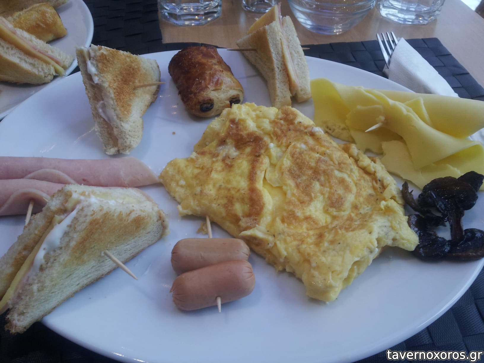 Βασικά κατέβηκα ένα πρωί για να δοκιμάσω τον πρωινό μπουφέ του και εντυπωσιάστηκα. Δεν ξέρω πού αλλού με 5€ μπορείς να φας ενα ικανοποιητικό πρωινό με καφέ. Ο χώρος μικρός με 5 τραπεζάκια έξω και self-service. Παίρνεις το πιατάκι σου και σερβίρεσαι. Οταν πήγαμε εμείς είχα διάφορα είδη από πιτούλες , μπισκοτακια, κρουασάν, κάποια σφολιατοειδή με μαρμελάδες,λουκανικα, ομελετα, μανιτάρια, διάφορα δημητριακά, γαλοπουλα, κασερι, τυρι, ντοματα , αγγούρι, γιαουρτι με φράουλες και κάποια φρούτα που δεν δοκίμασα.