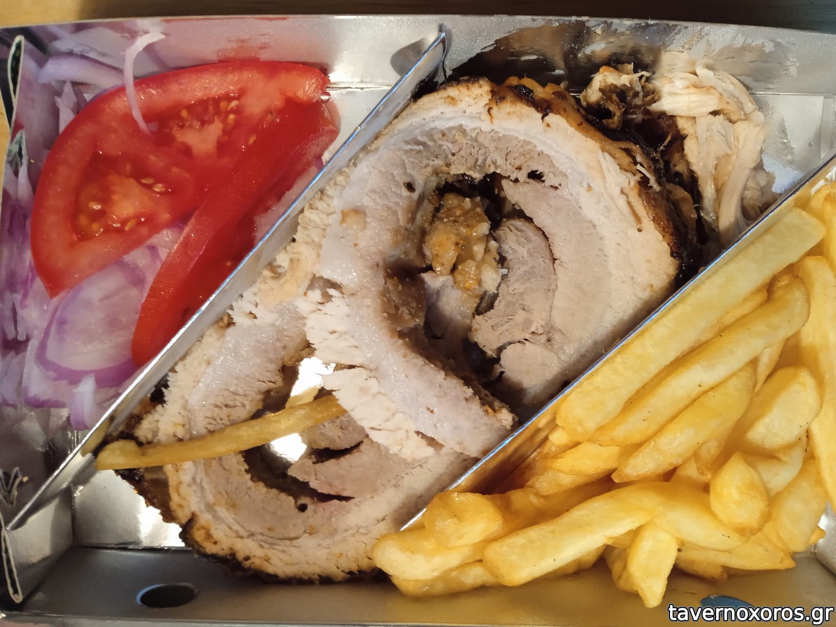 Πολυ καλος και ο χοιρινος γυρος (ζητηθηκε ξεροψημενος).