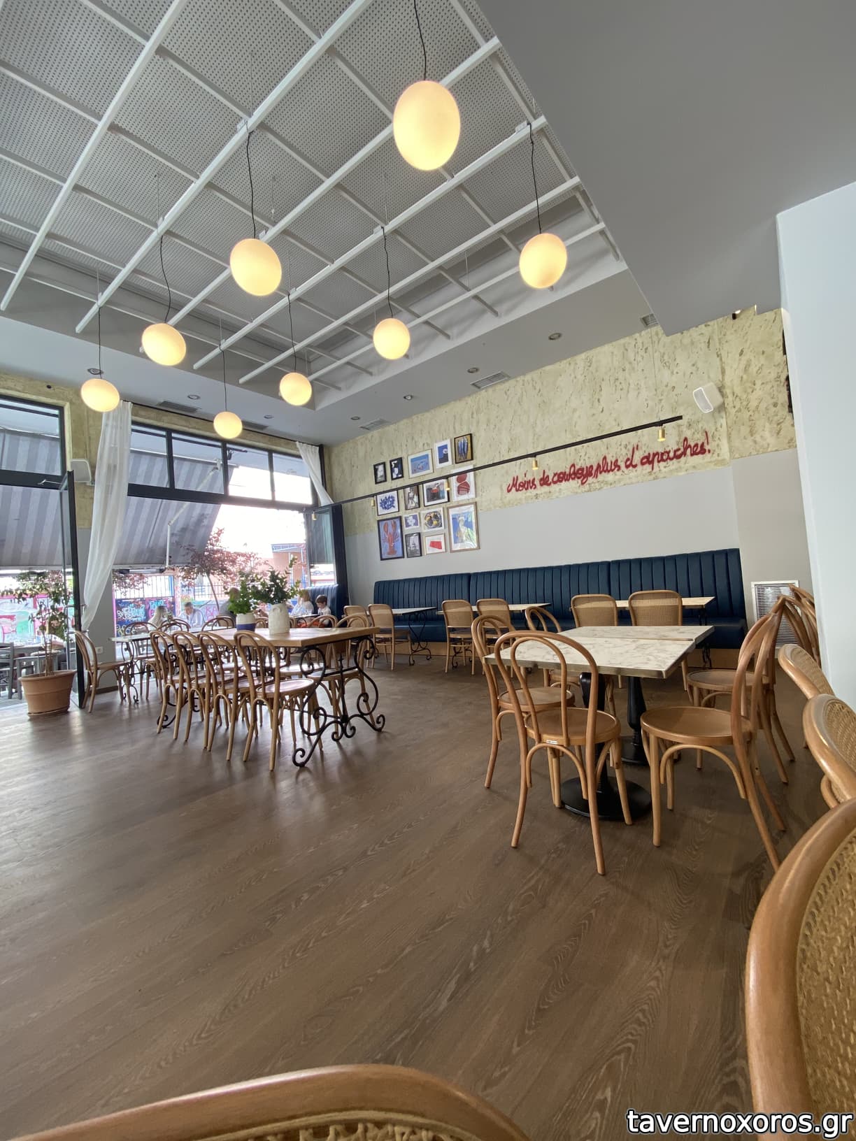 Ευχάριστος και καθόλου βαρύς ο εσωτερικός χώρος και διάκοσμος, αποστάσεις μεταξύ τραπεζιών, ημι-ανοιχτή κουζίνα (διαβάζω πως ανακαινίστηκε πρόσφατα). Κατά την είσοδο ζητήθηκαν κι ελέχθηκαν πιστοποιητικά νόσησης/εμβολιασμού.