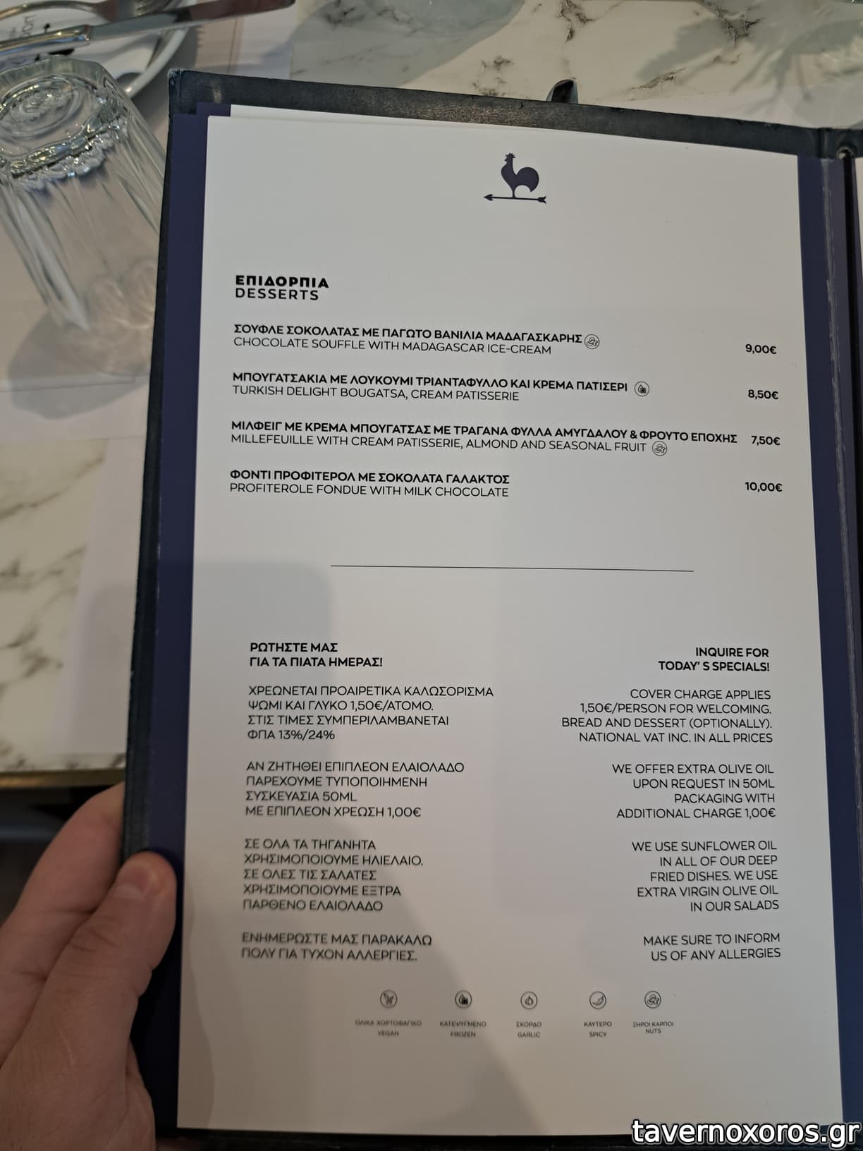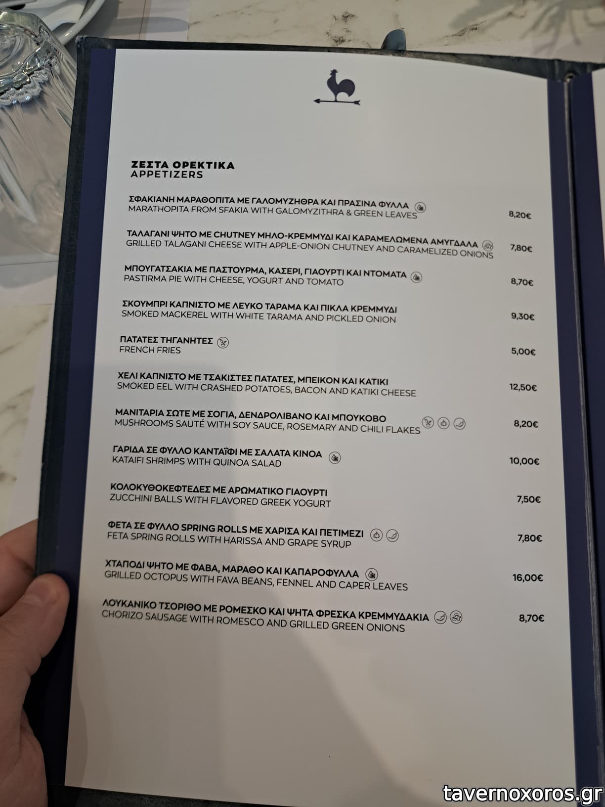 αρνητικη εντυπωση εκανε ο γαυρος και οι κολοκυθοκεφτεδες που αργησαν παρα πολυ και ηρθαν αφου τελειωσαν τα υπολοιπα κυριως, καθως και οι μυζηθροκεφτεδες οι οποιοι ηρθαν κατα λαθος αντι των κολοκυθοκεφτεδων και τους οποιους χρεωσε κανονικα.