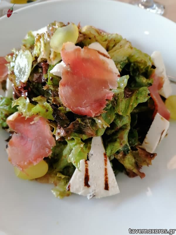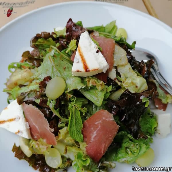 "Ανάμεικτη σαλάτα με νούμπουλο και ψητό μανούρι" (πολύ καλή)