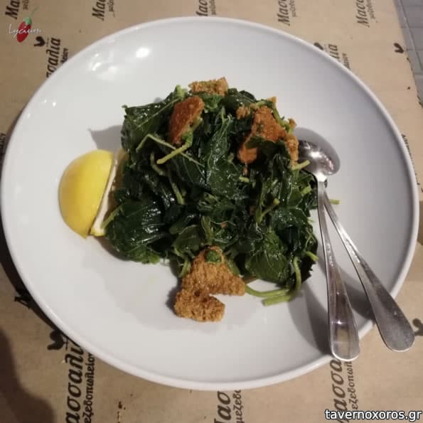 Μου άρεσε πάρα πολύ η φάβα και μια σαλάτα με σπανάκι δαμάσκηνο.