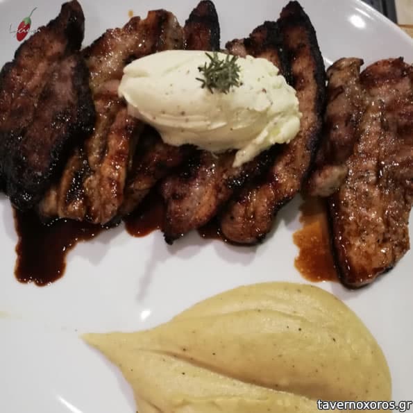 Παντσέτα μελωμένη με πουρέ μελιτζάνας (από τα κλασικά πιάτα, πολύ καλό)
