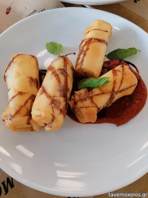 "Φέτα τυλιχτή με πάστα πιπεριάς" (νόστιμο)