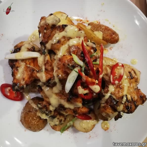 "Κεμπάπ κοτόπουλο με σαλάτα και αρωματικό γιαούρτι" (πολύ καλό)