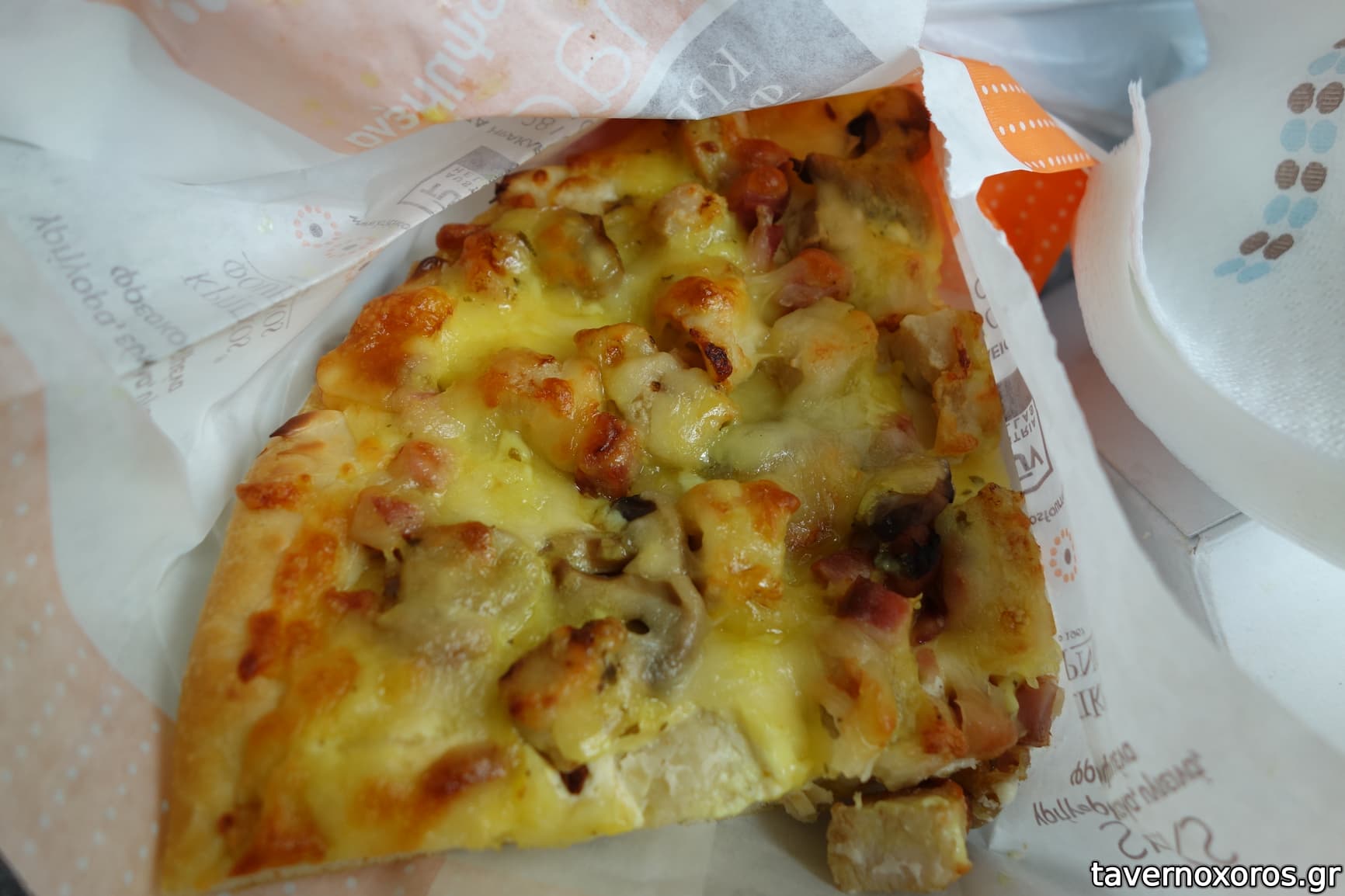 Πίτσα κοτόπουλο special (καλή αλλά λίγο υπερβολική, με Φιλαδέλφεια αντί ντομάτας, μπέικον και μανιτάρια)