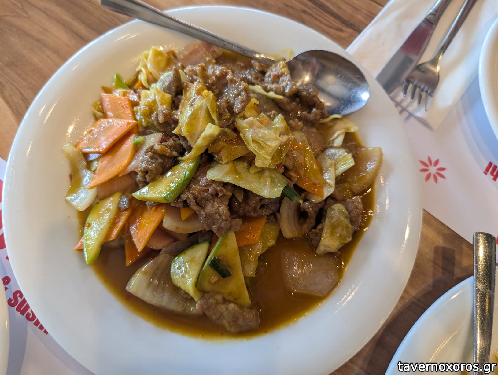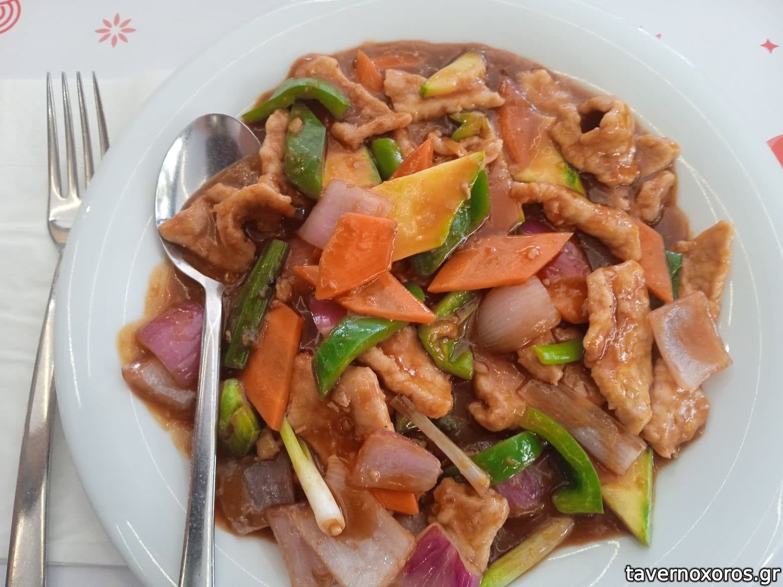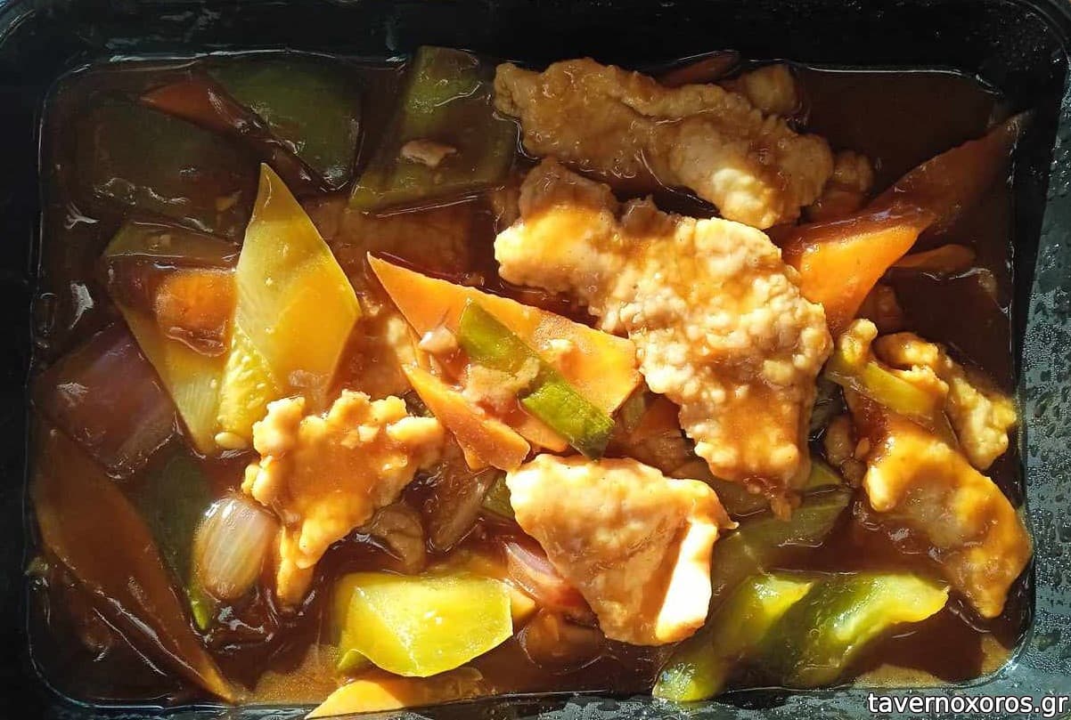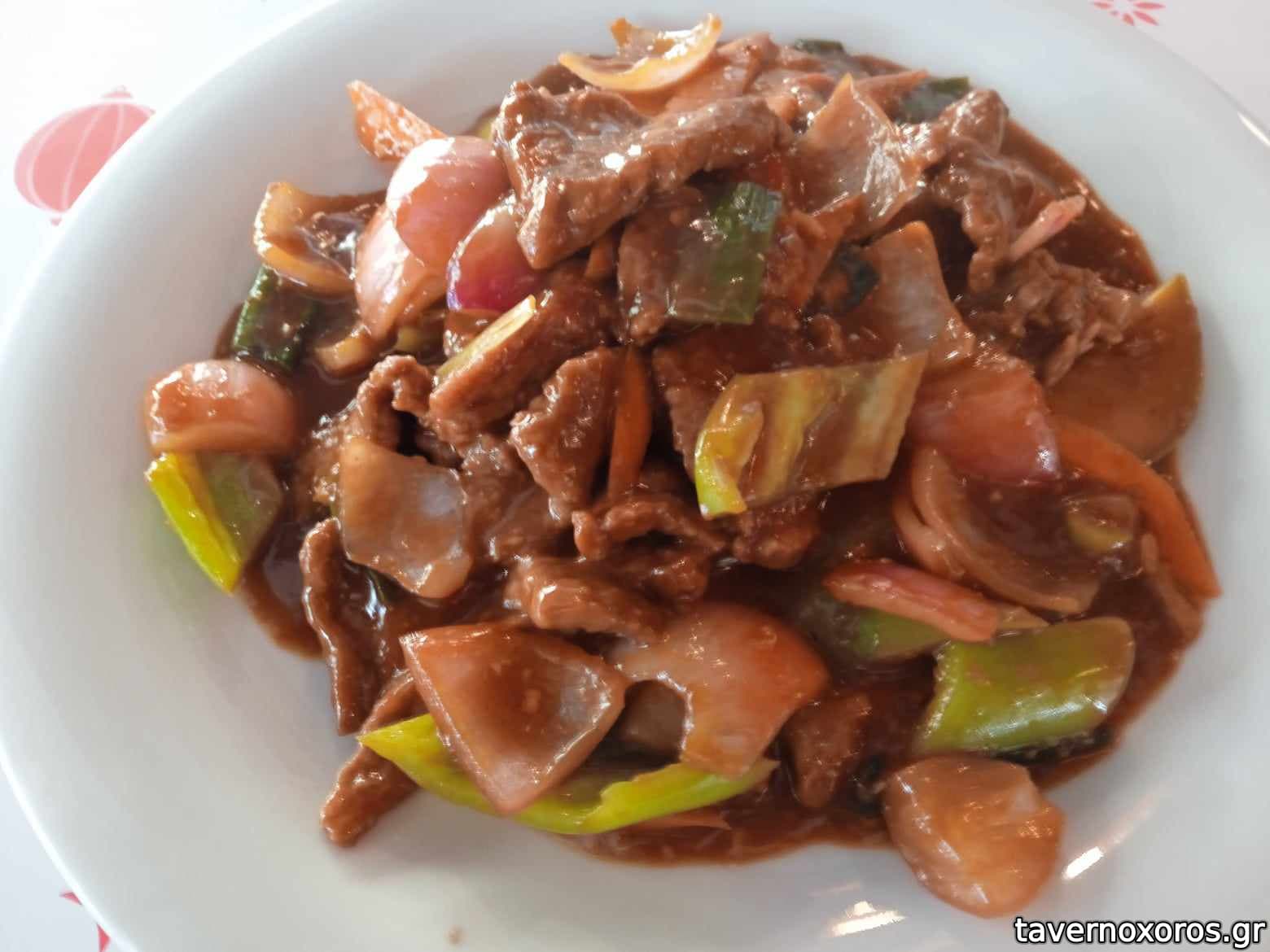 - Μοσχάρι γλυκόξινο καυτερο: καλό. έχει αρκετά λαχανικά