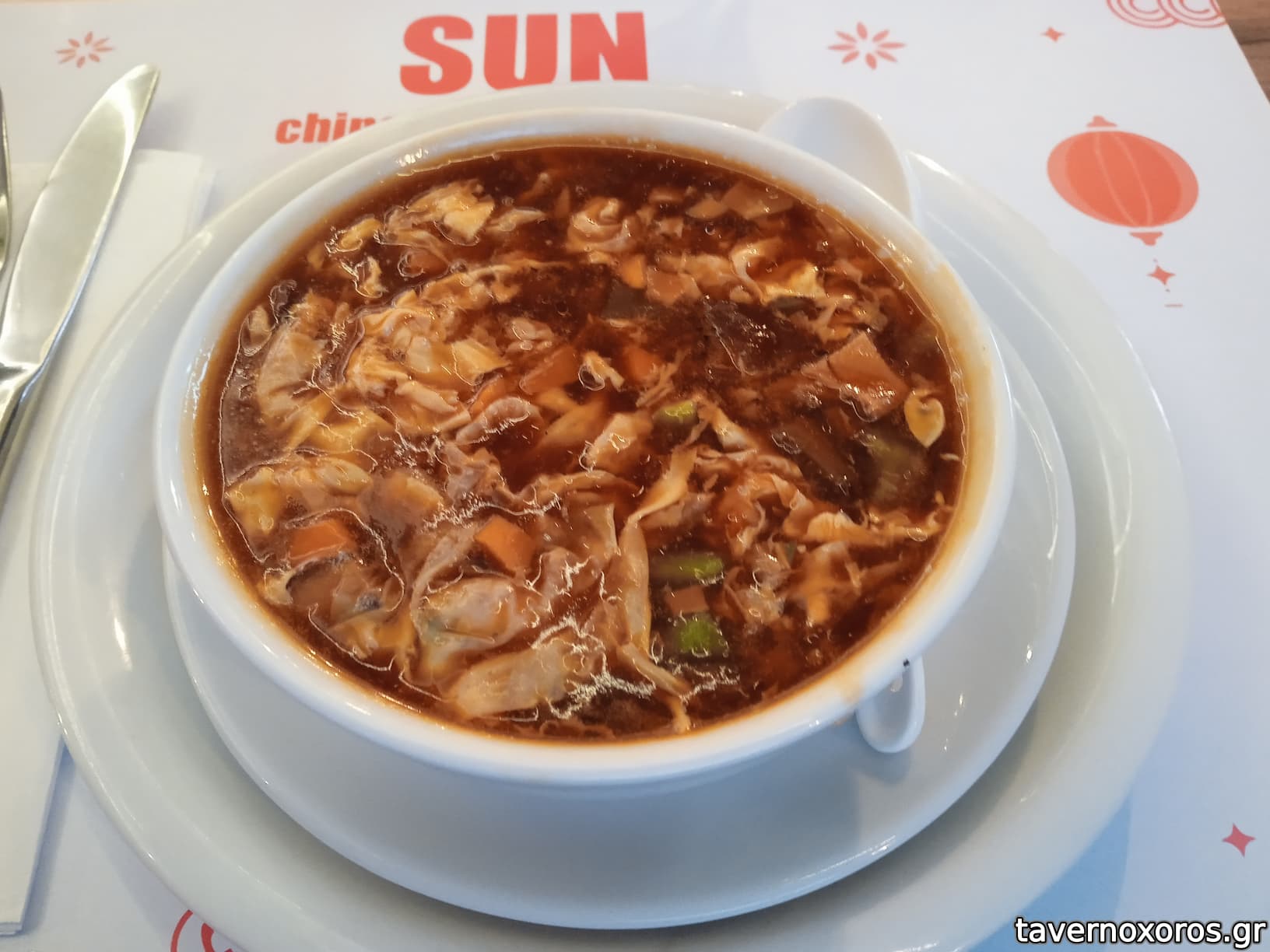 Καυτερή γλυκόξινη σούπα: αποκάλυψη! Μου την είχαν συστήσει και την πήρα και είναι όντως πολύ καλή! Έχει έντονη γεύση. Διάφορα λαχανικάκια μέσα. Θα έπαιρνα άνετα δύο σερί...