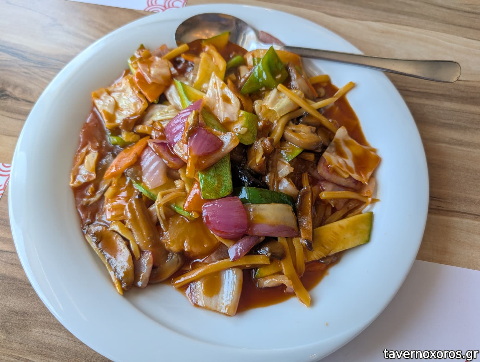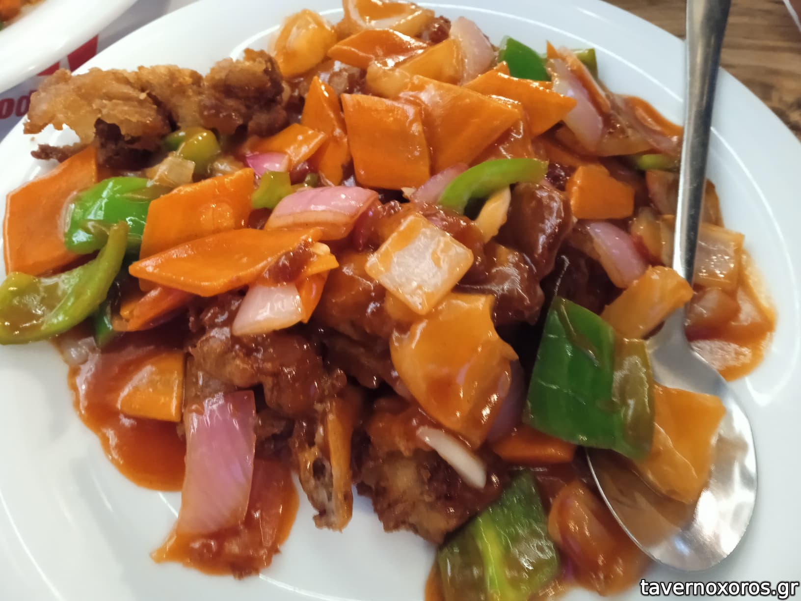 -Γλυκοξινο καυτερο μοσχαρι, μαρεσε. Καλη μεριδα, πλουσια με μπολικο κρεατακι, αρκετα λαχανικα, και νοστιμη γλυκοξινη σως.